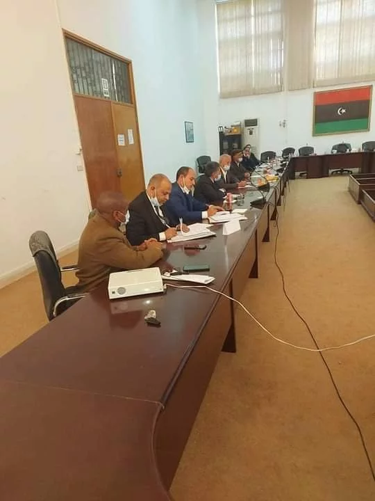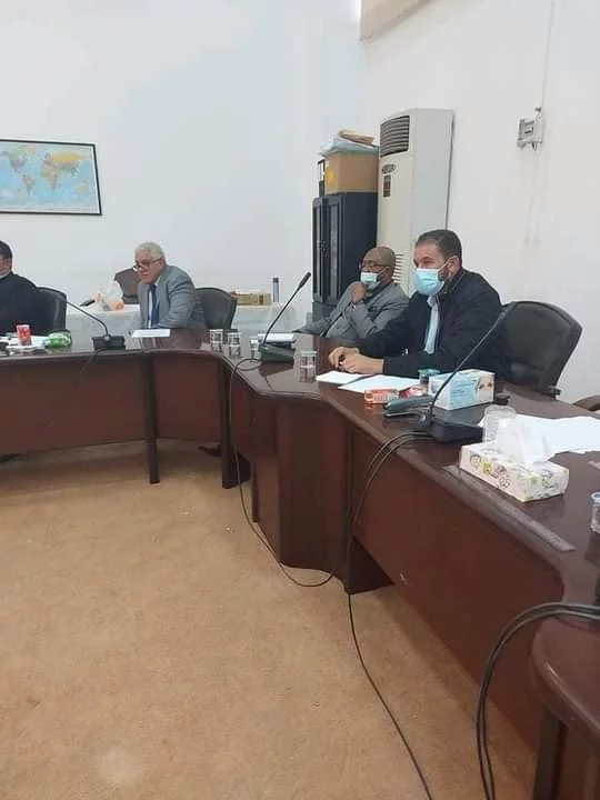 On behalf of the President of the University, Prof. Nabil Enattah, the Vice-Chancellor of Community and Environment Affairs, Prof. Faidi Al-Murabit, and Deans of Faculties, participated in a meeting to execute the ‘training between questioner and respondent’ program. The program was presented by Abdullah Ahmed Al-Nuwaisry, an advisor in the Minister of Labor, for the purpose of initiating joint cooperation and participation with the Ministry of Labor to improve and activate the role of institutional training with competent authorities through the university.