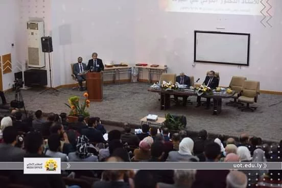 برعاية وزارة العدل وبحضور رئيس جامعة طرابلس "أ.د.نبيل النطاح" أفتتح صباح اليوم الأحد بمدرج رشيد كعبار بكلية القانون،المؤتمر العلمي التكريمي الثالث تحت شعار "للتكريم عنوان،،الرواد،، احتفاءً ووفاءً وتكريماً للفقيه القانوني الدكتور" الكوني علي اعبودة"أستاذ القانون الخاص بالجامعات الليبية ، وحضر هذا المؤتمر وزير العدل ووزير المالية ورئيس المجلس الأعلى للقضاء، ورئيس جهاز المباحث الجنائية وعدد من رؤساء الهيئات العامة ولفيف من أعضاء السلك القضائي وأعضاء هيئة التدريس بالجامعات الليبية، حيث ألقيت خلال الاحتفال العديد من الكلمات منها ،كلمة لوزير العدل ورئيس جامعة طرابلس، وكلمات لضيوف الحفل الذين أشادوا بمسيرة الفقيه القانوني "أ.د. الكوني اعبودة" كما تم عرض شريط مرئي لمسيرة الدكتور العلمية والمهنية. هذا وقد اهدى السيد وزير العدل درع الوزارة لدكتور الكوني ،كما تسلم الدكتور العديد من شهادات الشكر وتكريم تقديرا لمسيرته المليئة بالعطاء والتميز.