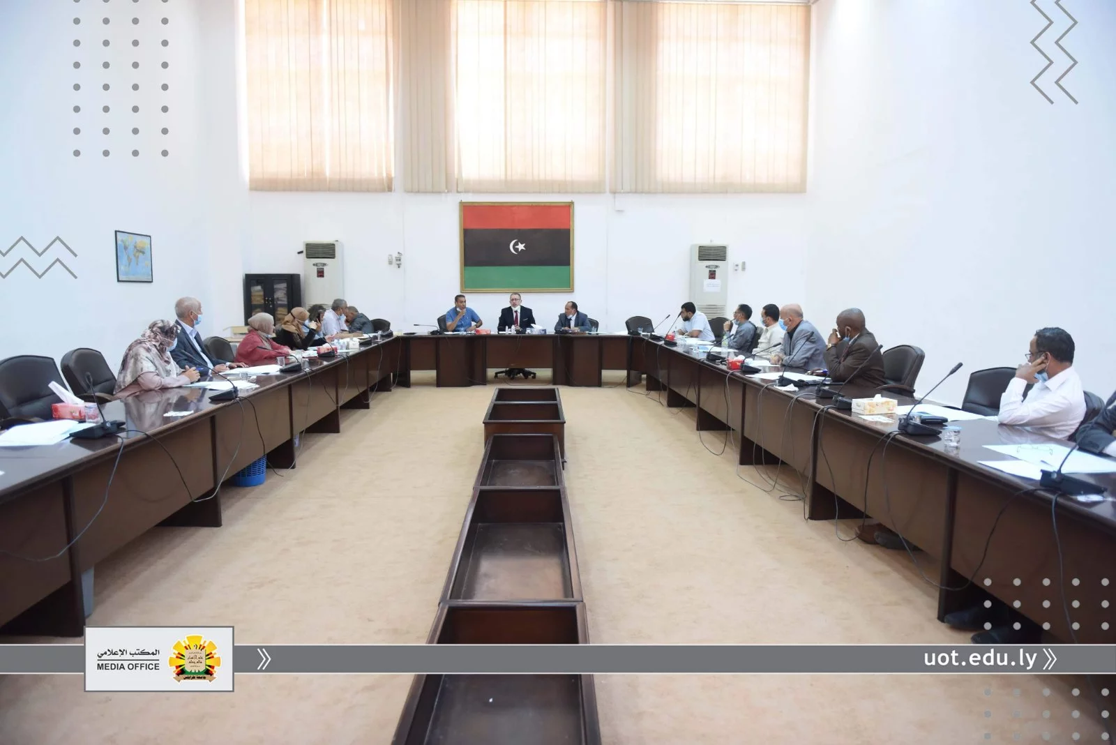 عقد صباح اليوم الخميس الموافق للعشرون من مايو 2021 ،الاجتماع الخامس لمجلس الجامعة ،برئاسة "أ.د نبيل النطاح" رئيس جامعة طرابلس، وبحضور السادة الوكلاء والكاتب العام وعمداء الكليات ونقيب أعضاء هيئة التدريس ونقيب موظفي الجامعة والمسجل العام ومدير مكتب الجودة، ورئيس اتحاد طلبة جامعة طرابلس.