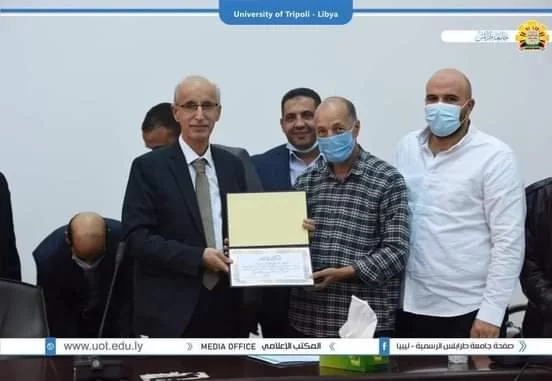 كما تم تكريم السيد أ. علي جلبان المسجل العام بالجامعة سابقاً على مجهوداته المقدمة طيلة فترة توليه منصب المسجل العام بجامعة طرابلس من قبل رئاسة الجامعة.