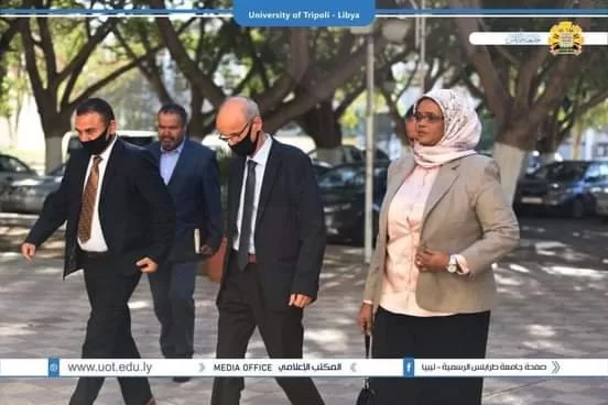 وكان في استقبالها السيد أ.د. خالد عون رئيس جامعة طرابلس والسيد د. طلال الزرقاني وكيل الشؤون العلمية بالجامعة والسيد أ. عبدالعاطي طبطابة مدير إدارة النشاط العام بجامعة طرابلس والسيدة د.ايمان الساحلي وكيلة كلية الفنون والإعلام بجامعة طرابلس.