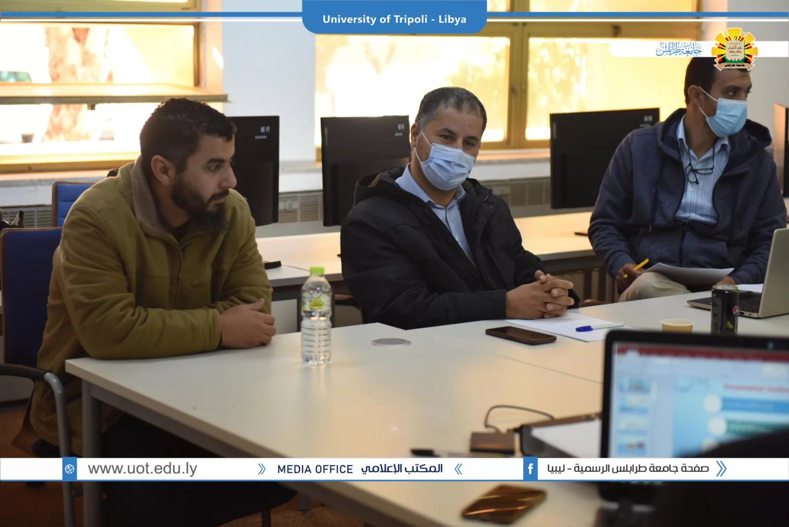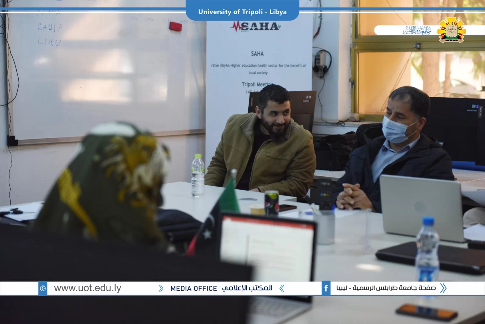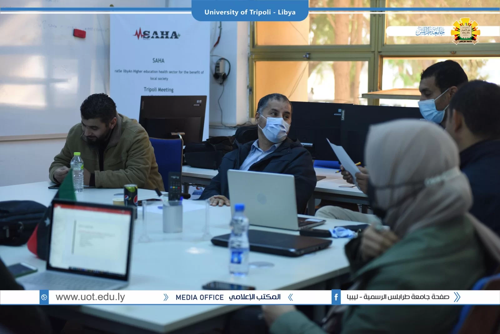 عُقد صباح اليوم الخميس الموافق 02/12/2021م بقاعة التواصل بمكتب التعاون الدولي بجامعة طرابلس زيارة ميدانية تقديمية لمشاريع بناء القدرات بجامعة طرابلس والمدعومة من وحدة المشروعات بالاتحاد الاوروبي. شارك في الزيارة السيد منسق مكتب ايراسموس د.علي باكير والسيد مدير المشروعات بالمكتب أ.د الصديق الشحومي ومن جانب جامعة طرابلس شارك فريق المكتب التعاون الدولي ومنسقو المشاريع بالجامعة تم عرض ملخص للمشاريع وشمل الأهداف والتحديات وإقتراح الحلول لمواجهة الصعوبات.