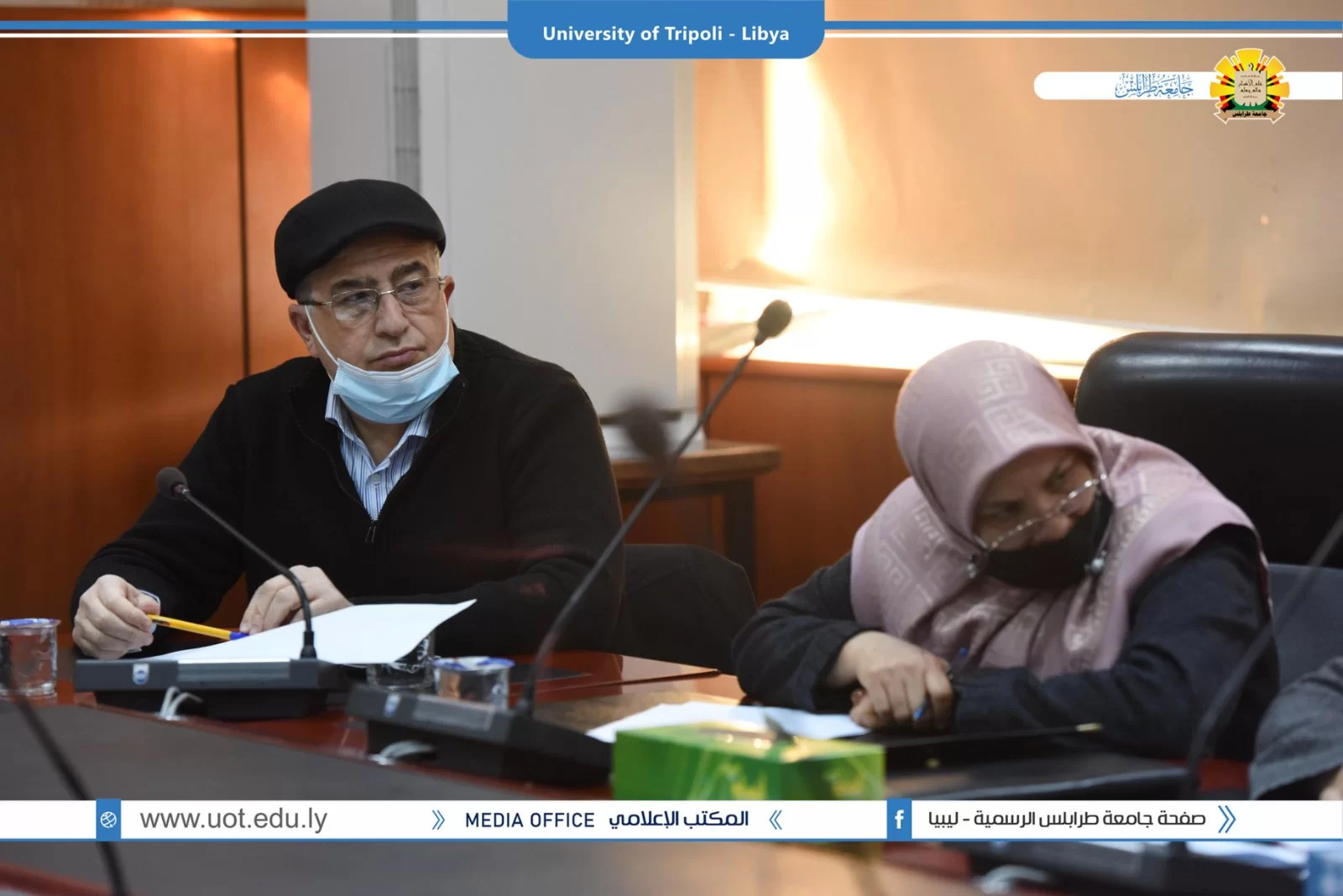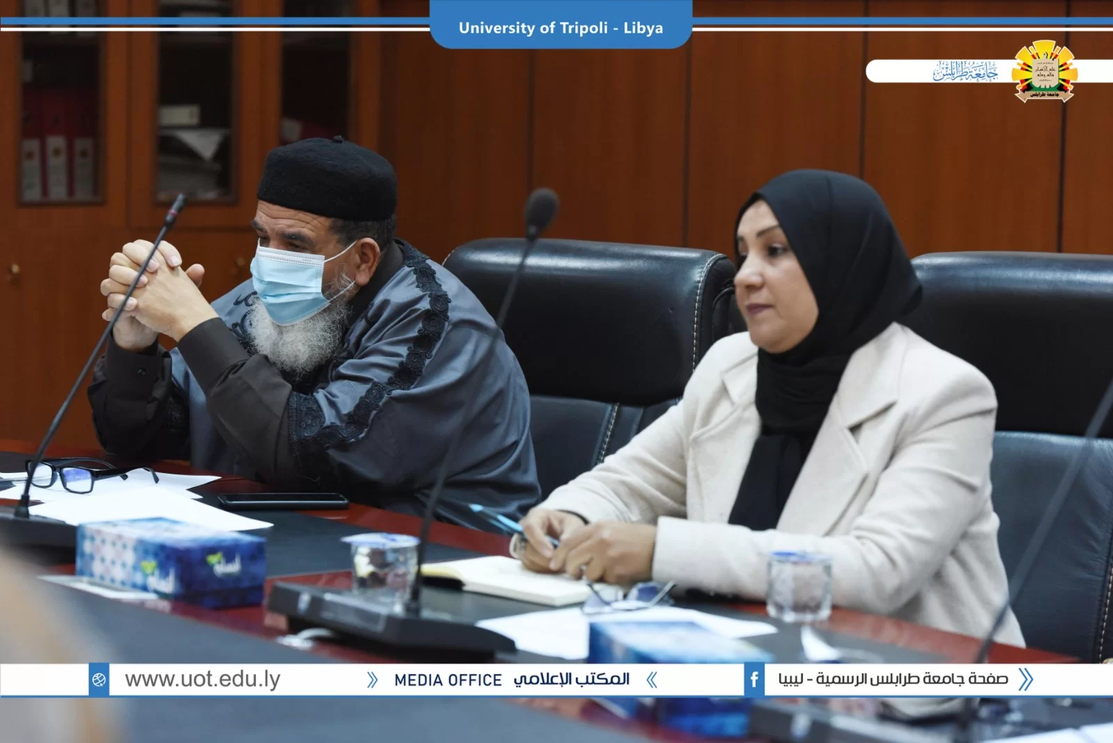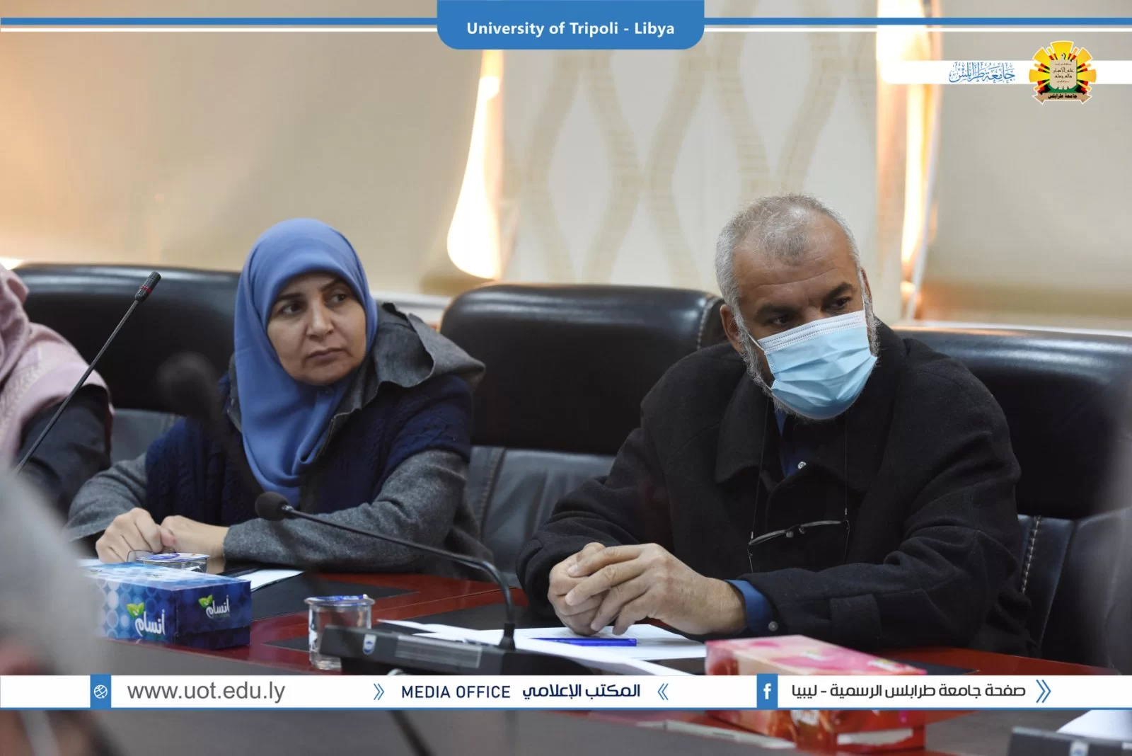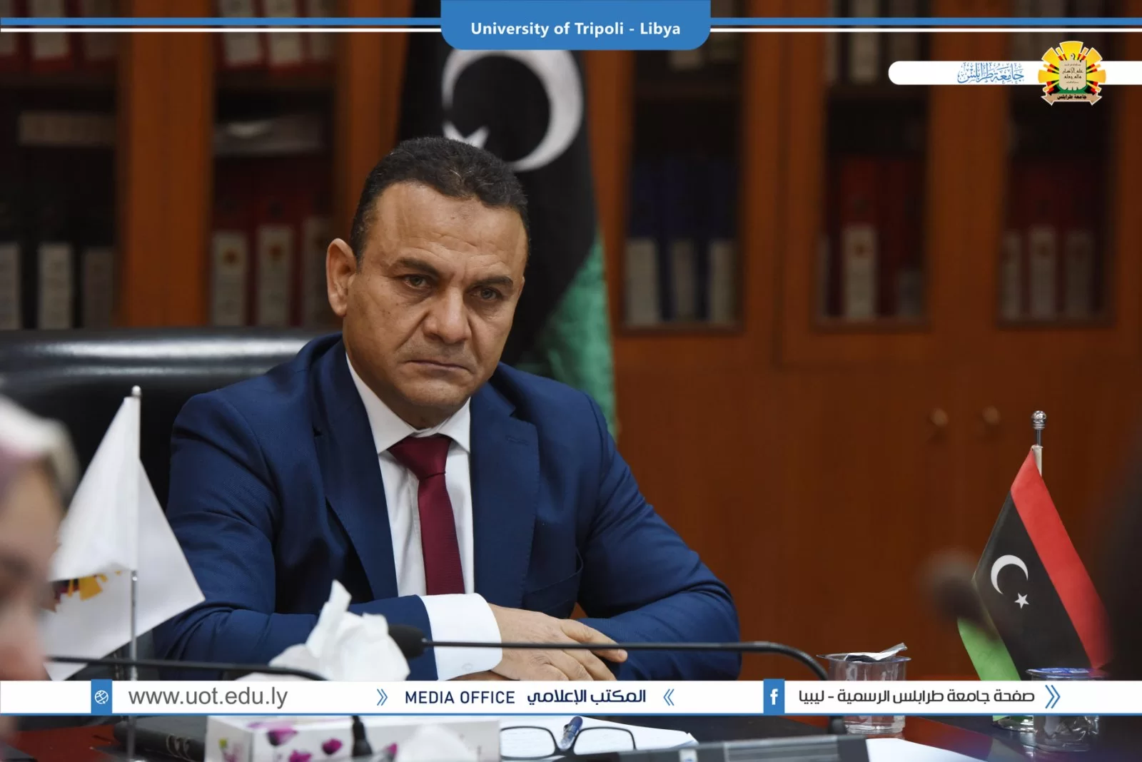 عقد صباح اليوم الاربعاء 19.1.2022 بقاعة الاجتماعات الرئيسية بادارة جامعة طرابلس الاجتماع الاول للعام 2022 لوكلاء الشؤون العلمية بالكليات الذي ترأسه الدكتور طلال محمد الزرقاني وكيل الشؤون العلمية بالجامعة وقد تم افتتاح الاجتماع بحضور السيد ا.د. خالد عون رئيس جامعة طرابس الذي بدوره شد على ايادي وكلاء الكليات واكد على اهمية دورهم في الرقي بمستوى الجامعة متمنيا لهم التوفيق في المهام الموكلة لهم .وقد تم استئناف الاجتماع برئاسة الدكتور طلال الزرقاني وكيل الشؤون العلمية بالجامعة حيث تم مناقشة جملة من البنود التي من اهمها عرض مهام وصلاحيات وكلاء الكليات واهم ملاحظاتهم وتوصياتهم .كما تم الاتفاق على اجراء اجتماع شهرى لوكلاء؟الكليات مع وكيل الشؤون
