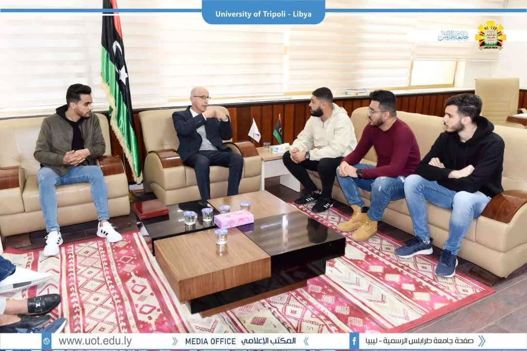 تكريم المنتخب الليبي للمبارزة بمناسبة احراز الميدالية الفضية بالبطولة الافريقية للعبة. 03/مارس/2022م قام الاستاذ الدكتور /خالد عون رئيس جامعة طرابلس بإستقبال اعضاء فريق المنتخب الليبي للمبارزة رفقة طاقم التدريب الخاص بالفريق و بمشاركة السيد مؤيد عاشور نائب رئيس اتحاد طلبة جامعة طرابلس؛ للإشادة بالمجهود الطيب الذي قدمه المنتخب بالبطولة والذي يضم العديد من طلبة جامعة طرابلس.وشارك اعضاء الفريق تجربتهم القارية مع الاستاذ دكتور رئيس الجامعة حيث احرز المنتخب الميدالية الفضية بالبطولة، وكذلك مناقشة خططهم للتطوير من اللعبة و زيادة تصنيف المنتخب عالميا، واختتمت الزيارة بتكريم المنتخب بدرع مقدم من قبل رئاسة الجامعة واتحاد طلبة جامعة طرابلس.