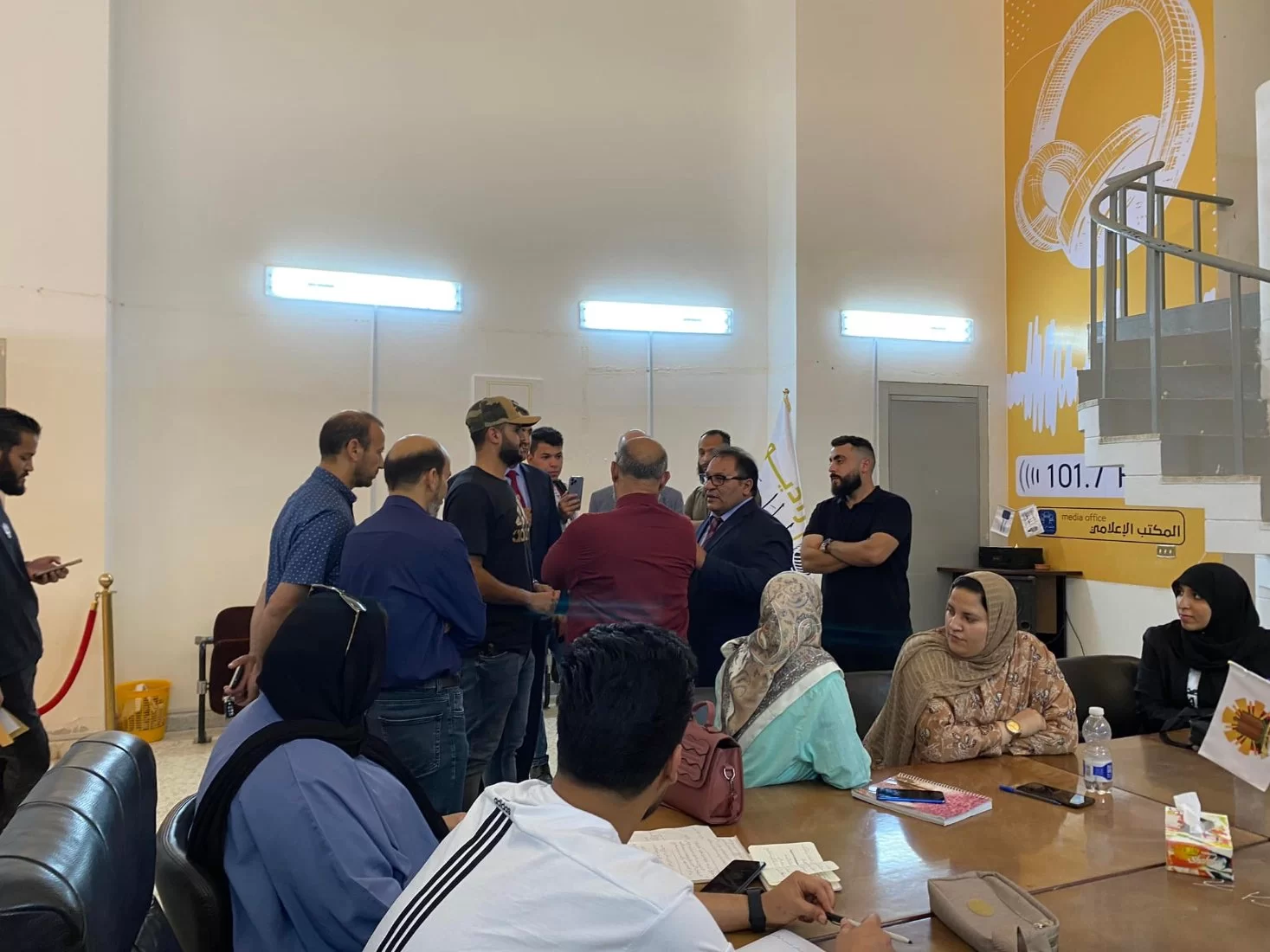 إذاعة راديو الجامعة تستقبل وزارة التعليم العالي و البحث العلمي طرابلس 28 مايو 2022 م استقبل السيد أ . عبدالله الترهوني مدير المكتب الإعلامي بجامعة طرابلس السيد أ. د . عمران القيب وزير التعليم العالي و البحث العلمي رفقة كل من السيد أ.د. خالد عون رئيس جامعة طرابلس و السيد د. خالد غومة وكيل الجامعة للشؤون العلمية و السيد د . علي سالم مدير إدارة الإعلام و التواصل بالوزارة حيث جاءت هذه الزيارة ضمن التنسيق المستمر بين الجامعة عامة و متابعة الوزارة للمنابر الإعلامية بالجامعات الليبية الجدير بالذكر ان إذاعة راديو الجامعة تم إعادة تفعيلها نهاية الاسبوع الماضي و الذي بدوره سيكون صوت الجامعة الذي يسلط الضوء على كل ما يدور داخل اروقة الجامعة