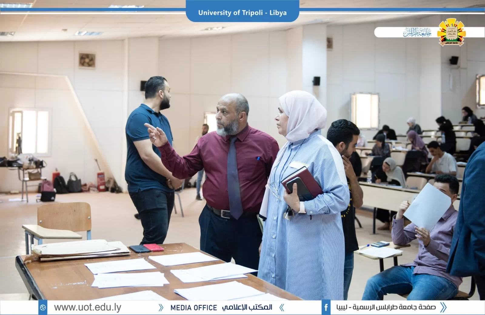 رئاسة جامعة طرابلس تتفقد الإمتحانات النصفية لطلبة المرحلة التمهيدية للعلوم التطبيقية طرابلس 28 مايو 2022 م قام السيد د. خالد غومة وكيل الجامعة للشؤون العلمية رفقة كل من د . ربيعة الغزيل منسقة المرحلة التمهيدية للعلوم التطبيقية و السيد د . علي مصدق المسجل العام بالجامعة و السيد أحمد ابورقيقة رئيس إتحاد طلبة جامعة طرابلس بجولة تفقدية لمتابعة سير الامتحانات النصفية للمرحلة التمهيدية للعلوم التطبيقية حيث تابع السيد وكيل الجامعة وضع اسئلة الإمتحانات النصفية من وجهة نظر الطلبة و مدى تغطية المنهج الدراسي من قبل أعضاء هيئة التدريس