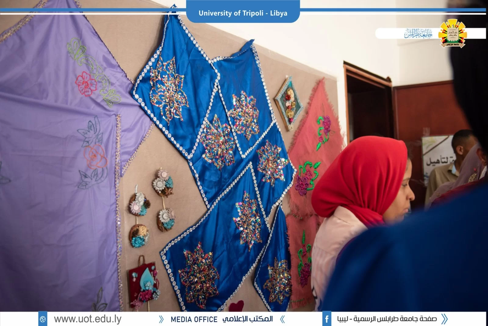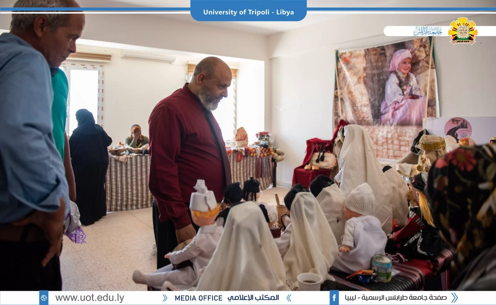 افتتح وكيل جامعة طرابلس للشؤون العلمية السيد د.خالد غومة يوم الأربعاء الموافق 29/28/6/2022 المعرض العلمي الثقافي التراثي الذي نظمه قسم الخدمة الاجتماعية بعنوان " أعمالنا تنطق" والذي شهد حضور كبيراً لعدد من الشخصيات، علي رأسهم السيد أ.د عبدالله مليطان عميد كلية الآداب والسيد د.فاضل جبران رئيس المصالحة الوطنية بمجلس الوزراء ورئيس اللجنة التحضيرية للملتقى المصالحة السيد أ.مسعود الغزيوي وبعض أعيان و وجهاء بلدية طرابلس والأدميرال بحار نوري داقو وم. أسامة حويته مدير إدارة النشاط بجامعة طرابلس وبعض رؤساء الأقسام العلمية بكلية الآداب وأعضاء هيئة التدريس والطلاب.