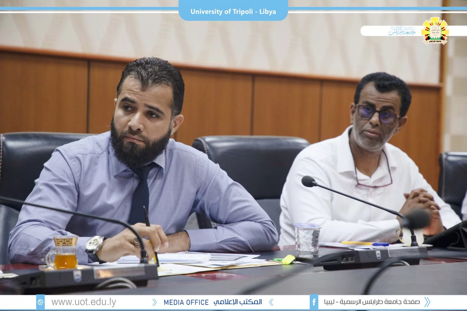 اجتماع لجنة المنظومة الوطنية الموحدة بوزارة التعليم العالي والبحث العلمي مع مدراء الإدارات المعنية بجامعة طرابلس برئاسة السيد أ.د. خالد عون رئيس جامعة طرابلس.