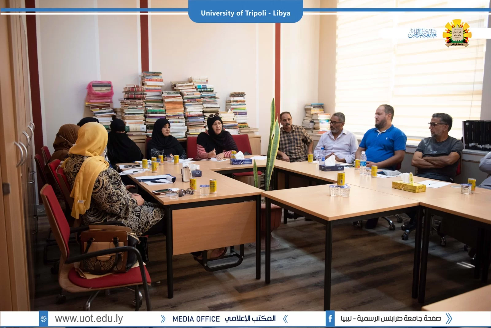 عُقد صباح اليوم الثلاثاء الموافق 30 أغسطس 2022م الاجتماع التقابلي التعارفي بين الأستاد نصر الدين كشيم مدير إدارة المكتبات و المطبوعات بجامعة طرابلس و رؤساء و أمناء المكتبات بالكليات و ذلك لمناقشة المختنقات التي تواجه عمل المكتبات و العمل على تذليل الصعوبات و تسهيلها و الاستماع لوجهات النظر و الأخذ بها، و تم بعد ذلك تحديد مواعيد لاحقة للاجتماعات الدورية من أجل التواصل بين إدارة المكتبات و المطبوعات و مكتبات الكليات.