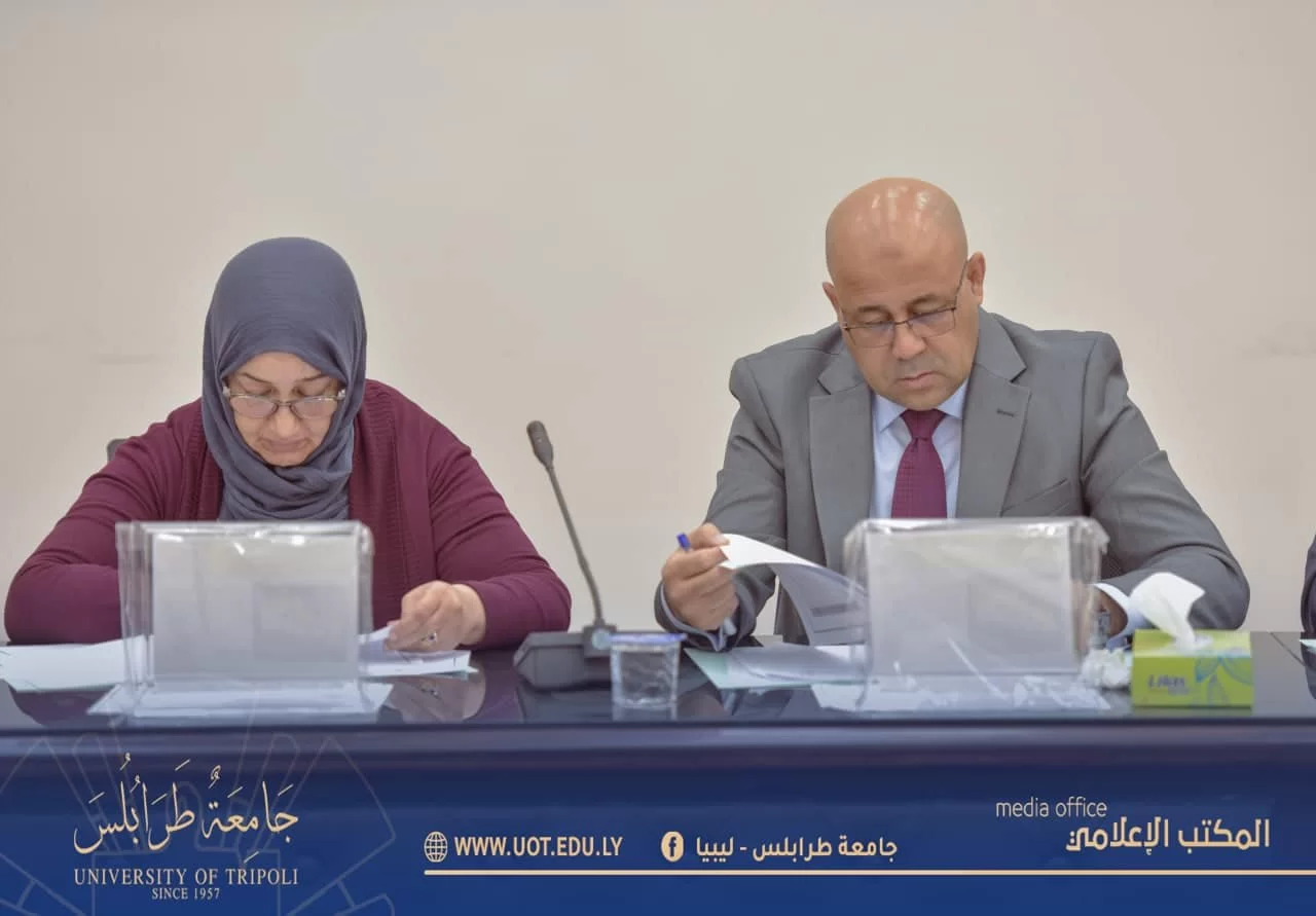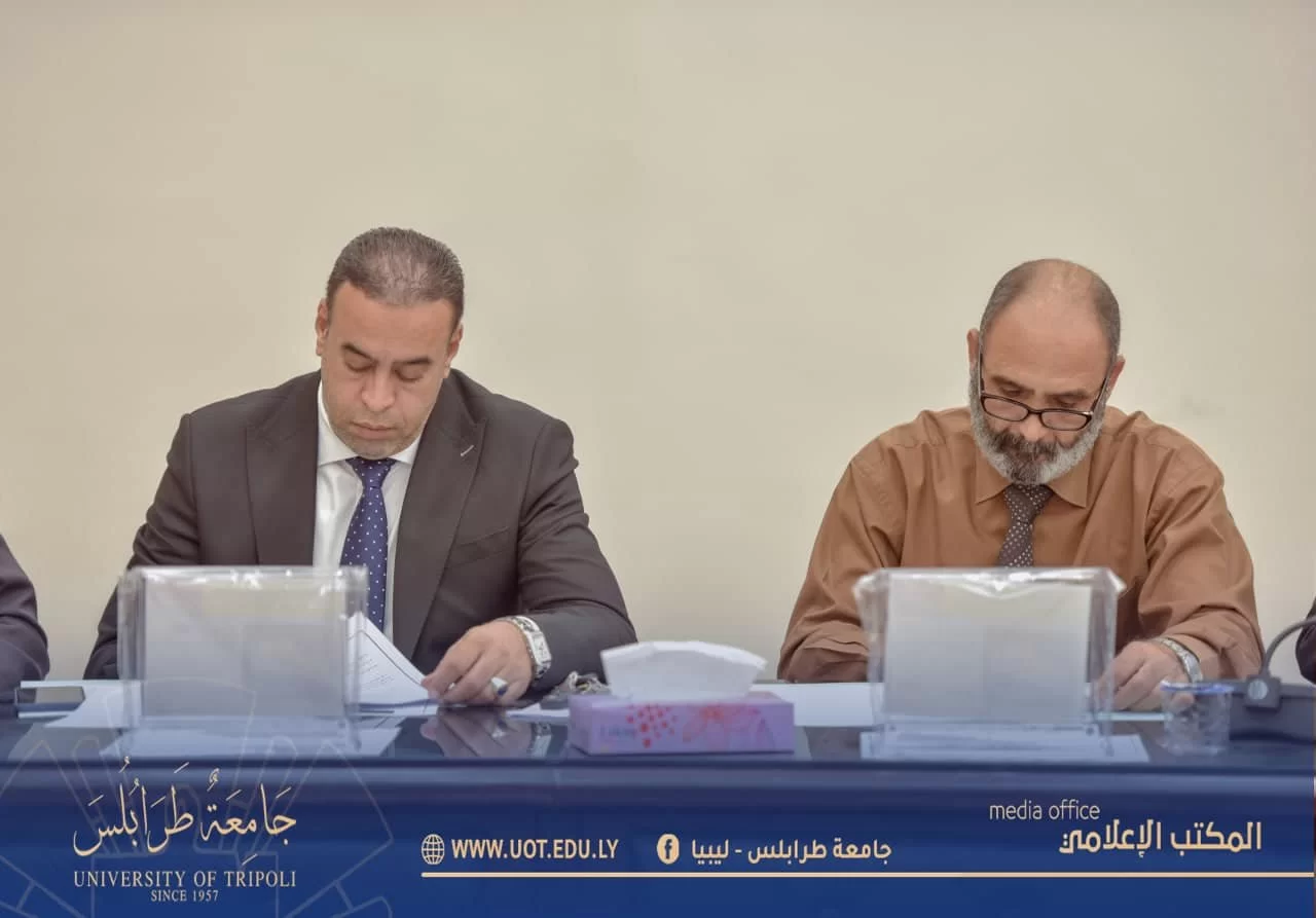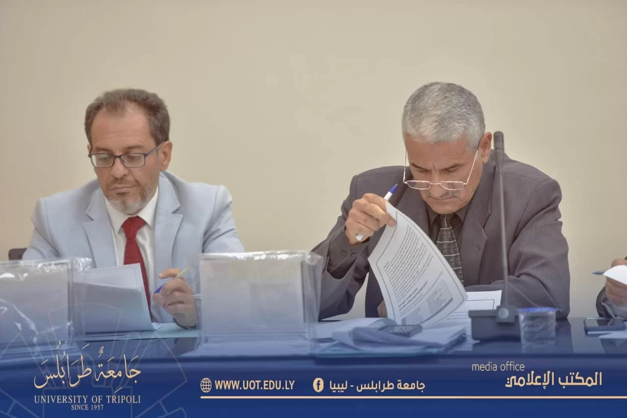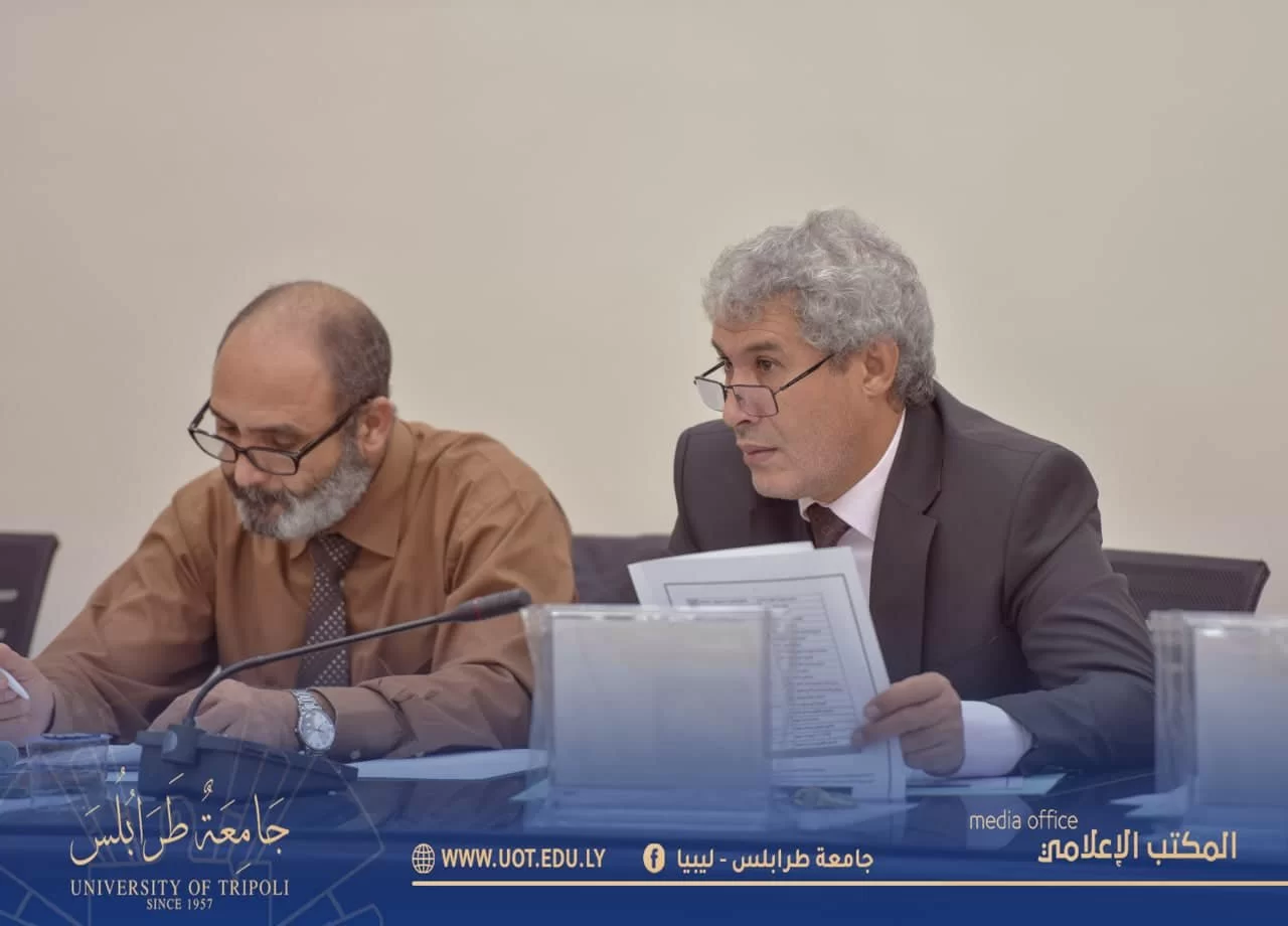 أقيم صباح اليوم الاثنين الموافق 21 نوفمبر 2022م بصالة اجتماعات رئاسة الجامعة الاجتماع الحادي عشر العادي للعام 2022م، بحضور السيد أ.د. خالد عون رئيس جامعة طرابلس والسادة الوكلاء وعمداء الكليات بالجامعة رفقة السادة رؤساء النقابات بالجامعة والسيد المسجل العام بالجامعة. حيث نوقشت عدة ملفات هامة أبرزها مناقشة طلب المركز الليبي الدولي للتدريب لإحتياجات الخريجين لتأهيلهم لسوق العمل، تشكيل لجان داخل الكليات للعمل على متطلبات ترقية الموقع الإلكتروني للجامعة، بالإضافة إلى عرض ومناقشة عدة مراسلات أبرزها ( الطلبة المجهرين، دمج بعض من المقررات الدراسية بكلية الصيدلة، اعتماد الاسم الصحيح لقسم التجارة الإلكترونية بكلية الاقتصاد والعلوم السياسية، عرض كلية التريبة طرابلس بشأن إقامة مؤتمر قسم اللغة الإنجليزية بالإضافة إلى عدد من مراسلات الوزارة). كما تطرق المجلس في بند الاتفاقيات إلى اعتماد اتفاقيات التعاون العلمي مع عدد من الجامعات الاندونيسية. بالإضافة إلى اعتماد عدد من محاضر الاجتماعات للمجالس العلمية بالكليات، ختاماً تعديل البرنامج الدراسي 2022م / 2023م.