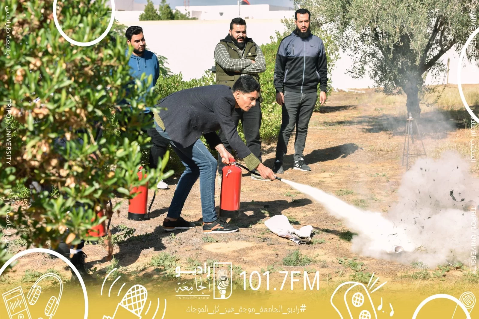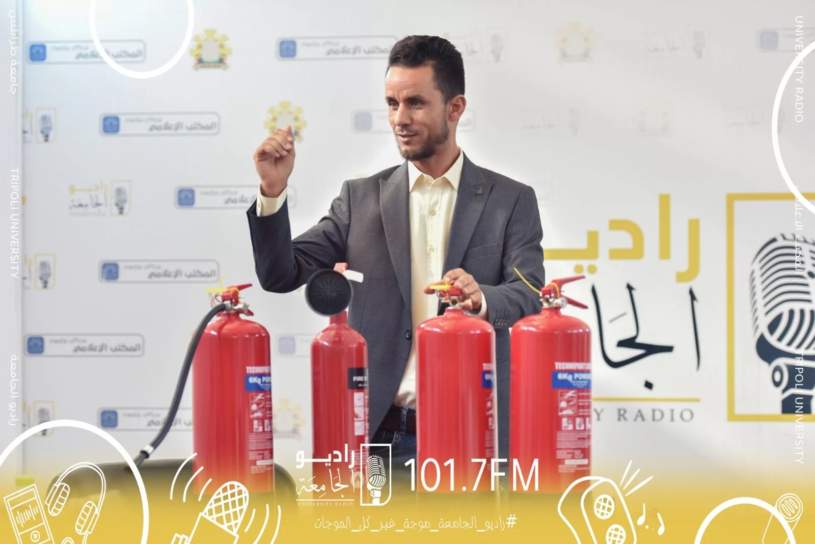 حرصاً من المكتب الإعلامي بجامعة طرابلس على أداء واجبه على أكمل وجه توسع بمداركه رفقة راديو الجامعة للإلمام بكافة مناح الحياة التي تُهم كافة شرائح المجتمع أُقيمت صباح اليوم الخميس الموافق 24 نوڤمبر 2022م بمقر راديو الجامعة بالتعاون مع هيئة السلامة الوطنية - وحدة الجامعة، ورشة عمل حول الإجراءات السليمة للتعامل مع الحوادث بمختلف أنواعها وقد سُلط الضوء على الحرائق بشكل خاص نظراً لأنها أكتر الحوادث المتداولة وإمكانية وقوعها واردة بنسبة كبيرة، حيث شملت فقرات الورشة شرح مُفصل عن أنواع إسطوانات إطفاء الحرائق وإخمادها وكيفية إستعمالها بالطريقة السليمة من عضو مختص من الهيئة وأيضاً شمل شرحه على النوع المناسب من الأسطوانات لكل حريق.وفي الختام تم تطبيق ما تم شرحه نظرياً بالباحة الخارجية.ومن هذا المنبر تتقدم إدارة المكتب الإعلامي وراديو الجامعة بجزيل الشكر الى هيئة السلامة الوطنية .