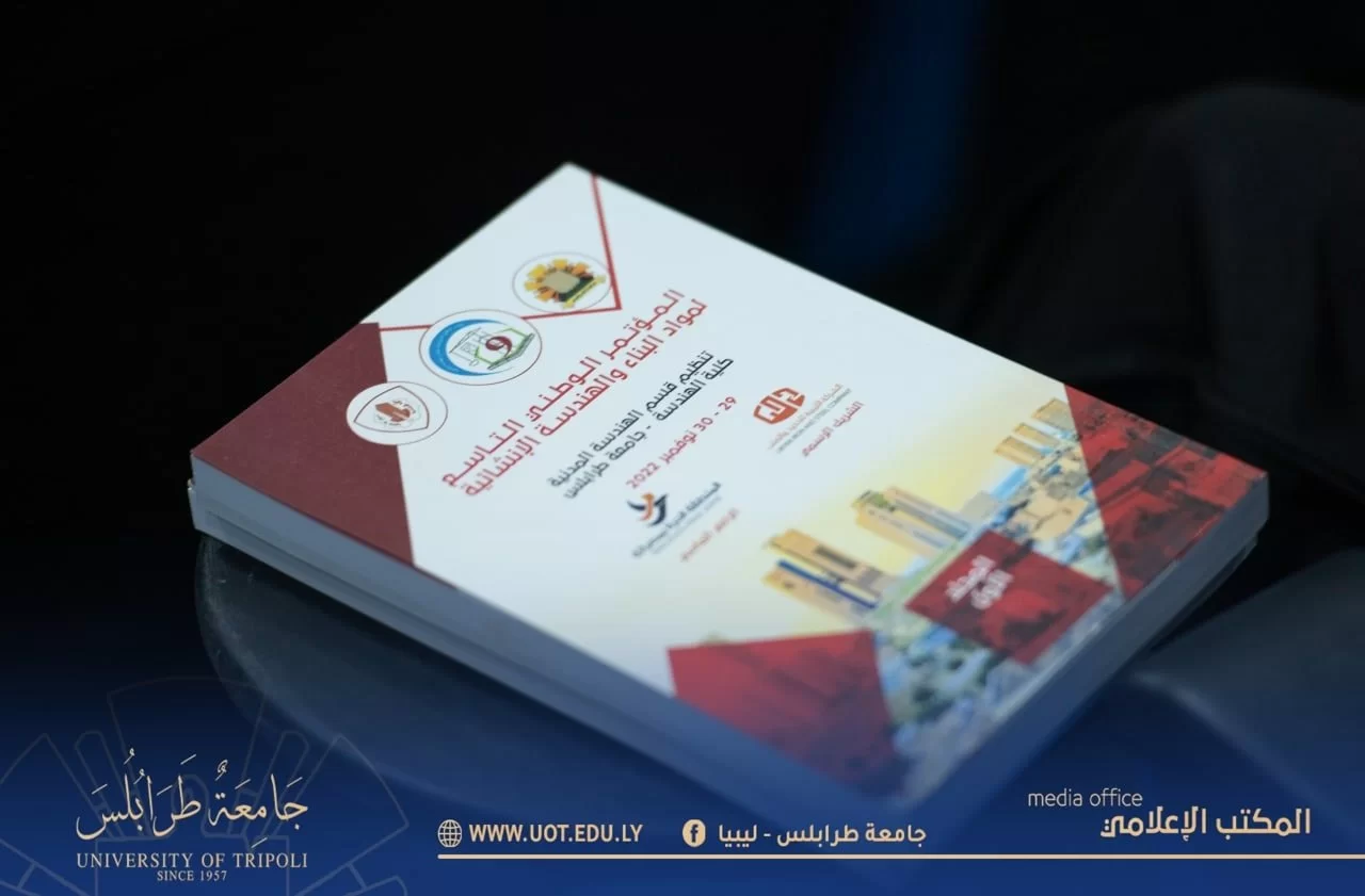 أُفتتح صباح اليوم الثلاثاء الموافق 29 نوڤمبر 2022م المؤتمر الوطني التاسع لمواد البناء والهندسة الإنشائية بجامعة طرابلس بحضور السيد أ.د. خالد عون رئيس جامعة طرابلس رفقة كلاً من السيد أ.د. خالد راشد عميد كلية الهندسة والسيد أ.د. رمضان الجدي عميد كلية العلوم والسيدة أ.د. هيفاء دوزان عميد كلية الزراعة والسيد م. علي الصومادي مدير إدارة الشؤون الإدارية والمالية بالجامعة والسيدة د. عائشة المنصوري وكيل كلية الهندسة وعدد من الخبراء والمختصين بموضوع المؤتمر من داخل البلاد وخارجها.يشمل المؤتمر في طيات برنامجه الزمني عِدة فقرات مختصة بعرض ومناقشة الأبحاث والدراسات العلمية الخاصة بمواد البناء وكافة مواضيع الهندسة الإنشائية وكيفية تنفيذ المشروعات ومايليها من أمور.الجدير بالذكر أن المؤتمر دوري يُقام كل سنتين بجامعة من الجامعات الليبية، حيث استقرت دورته التاسعة بأراضي جامعة طرابلس والذي سيشمل مناقشة وعرض أكتر من 50 ورقة بحثية على امتداد يومان تم تقسيمهم على جلسات حوارية علمية.