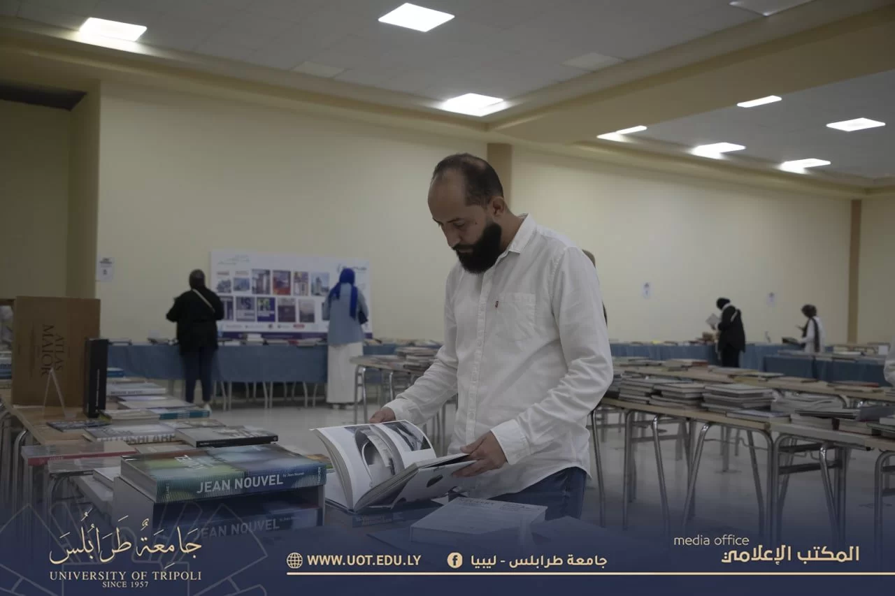 عدسة المكتب الإعلامي بجامعة طرابلس تنقل لكم جانب من فعاليات معرض الكتاب المعماري المُقام بقاعة شقليلة بتنظيم مكتب شؤون طلبة قسم العمارة والتخطيط العمراني بكلية الهندسة، حيث شمل المعرض بأروقته عرض مجموعة من الكتب القيمة بأسعار مميزة ومخفضة في مجال العمارة والجرافيك وأيضاً الفنون.