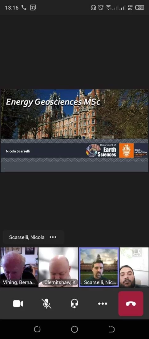 بدعوة كريمة من السيد بروفسور كلميتشو K.Clemitshaw رئيس قسم علوم الأرض في جامعة رويال هولواي ببريطانيا ، حيث شارك السيد أ.د. أسامة أحمد هلال رئيس قسم الجيولوجيا في اجتماع Microsoft Teams رفقة كل من د. عوض بلال رئيس قسم علوم الأرض بجامعة بنغازي والسيد أ. يوسف بوطرومة من الجمعية الليبية لعلوم الأرض، حيث تم مناقشة مواضيع عدّة ذات أهمية وصلة بمحور الموضوع أبرزها المهارات التي يتوجب تواجدها عند موظفي علوم الأرض حسب المنطقة الجغرافية والحواجز المتوقع تواجدها أمام من ينجزون درجة الماجستير في مجال الطاقة من علوم الأرض وتسليط الضوء على قضايا متوقع حدوثها.