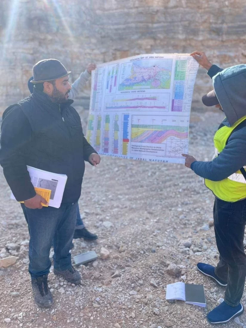 بالإضافة إلى تدريبهم مع كيفية تجميع البيانات الحقلية والاستفادة منها في رسم العمود الطبقي والتعرف على أسماء الصخور بإستخدام العدسات اليدوية والعلاقات الحقلية وفقاً لأسس علمية منظمة.