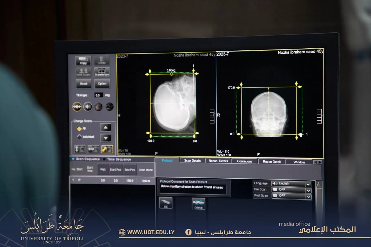 In the interest of the University of Tripoli to provide health services to its employees, faculty members, teaching assistants and students, it opens the CT Scan Department to offer the services at the University Infirmary. These services include physiotherapy, dentistry and nerve therapy sessions.