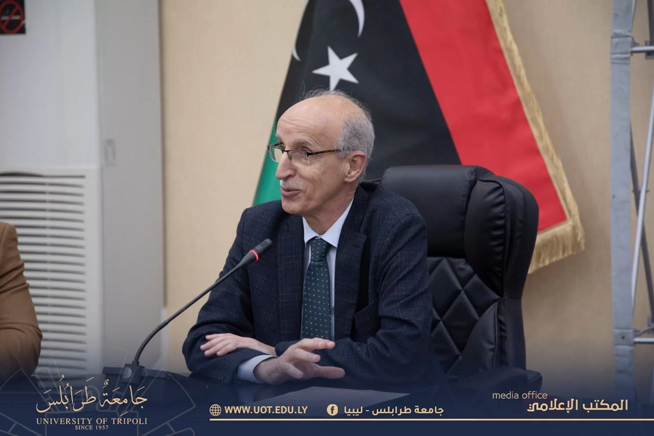 بتنظيم وزارة التعليم العالي والبحث العلمي وقد افتتح أعمال الورشة السيد د. صالح الغول وكيل وزارة التعليم العالي والبحث العلمي والسيد أ.د. خالد عون رئيس جامعة طرابلس، حيث استهل السيد د. مصباح الطالبي الورشة بكلمة ترحيبية بالسادة مدراء المراكز ومن ثم تم الانتقال إلى مناقشة محاور الورشة، والتي أهمها دور وأهمية مراكز الريادة والابتكار بالجامعات الليبية واستراتيجيات استقطاب الرواد وسبل تطوير الأفكار وتحويلها إلى مشاريع ناجحة ذات قيمة، وكذلك تم التطرق إلى أهمية التشبيك مع أصحاب المصلحة ودوره في تذليل العقبات وآليات اعتماد مقرر الريادة والابتكار بالجامعات والأكاديمية الليبية.