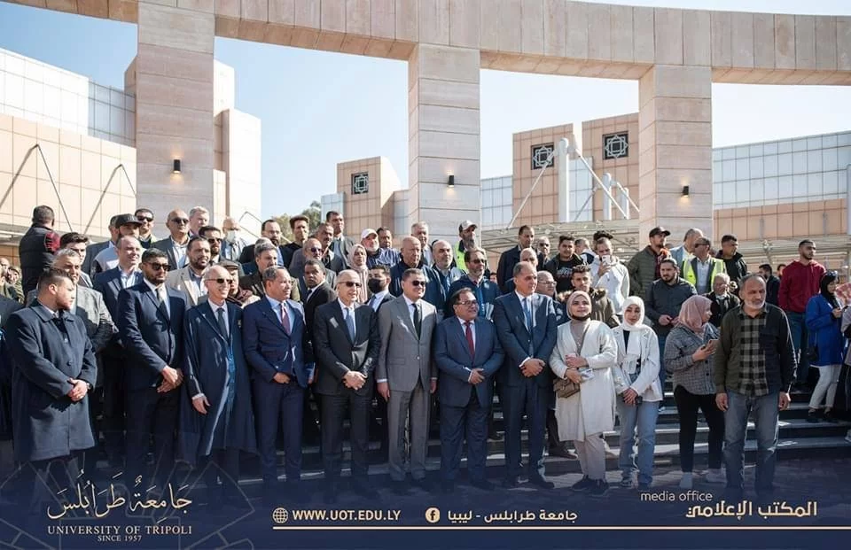 افتتح مساء اليوم الثلاثاء الموافق 21 فبراير 2023 م مجمع مدرجات جامعة طرابلس الجُدد بحضور السيد م. عبد الحميد الدبيبة رئيس الوزراء رفقة السيد الصديق الكبير محافظ المصرف المركزي والسيد خالد شكشك رئيس ديوان المحاسبة، حيث كان في استقبالهم السيد د. عمران القيب وزير التعليم العالي والبحث العلمي والسيد أ.د. خالد عون رئيس جامعة طرابلس رفقة السادة وكلاء الجامعة وعمداء الكليات والسيد رئيس اتحاد طلبة جامعة طرابلس والاتحادات الفرعية بالكليات.