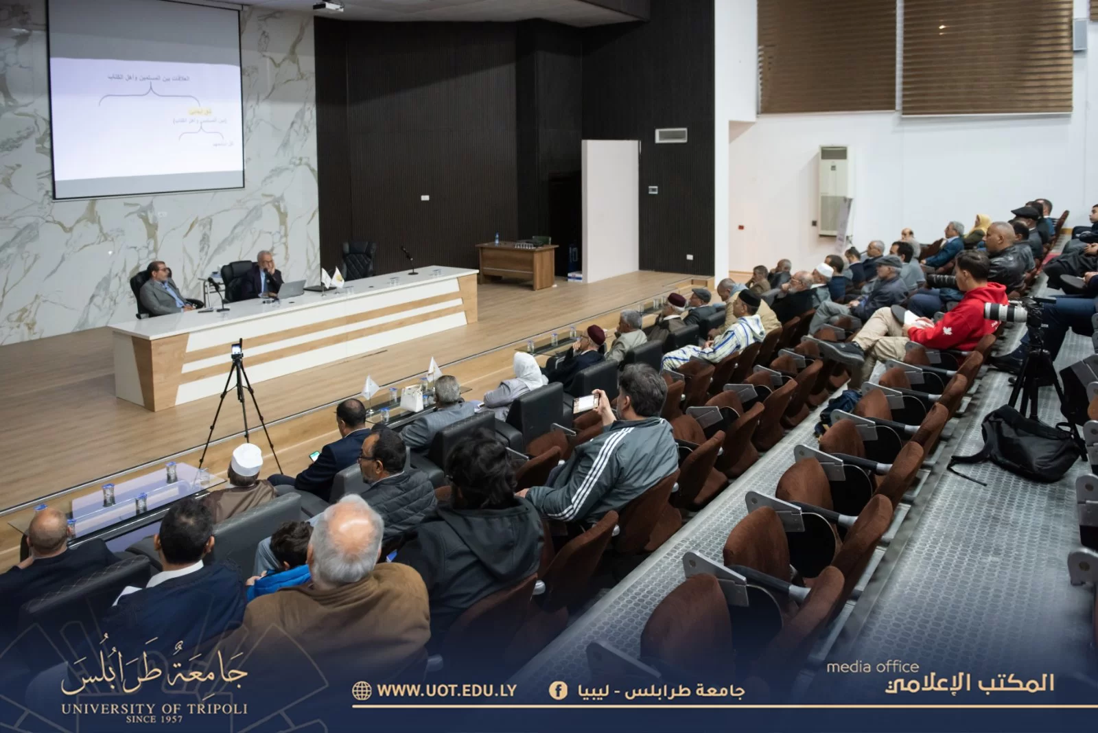 أقيمت مساء اليوم الأحد الموافق 2 أبريل 2023 م محاضرة علمية بعنوان: "الإسلام منهج تفكير" ضمن نشاط جامعة طرابلس الثقافي؛ حيث استضاف المنتدى الثقافي السيد الأستاذ والمفكر المحامي محمد خليفة الذي ألقى المحاضرة في أمسية رمضانية، وقد تناولت المحاضرة دراسة مقارنة للأديان وموقف منهج تفكير الإسلام في الكثير من القضايا الفكرية والجدلية، وتميزت المحاضرة بمشاركات الحضور القيمة ومداخلاتهم التي أثبتت دور وحرص جامعة طرابلس على نشر المعرفة والثقافة الرصينة خدمةً للدين الإسلامي الذي يحرر العقل ويكفل الإنتاج الفكري السليم.