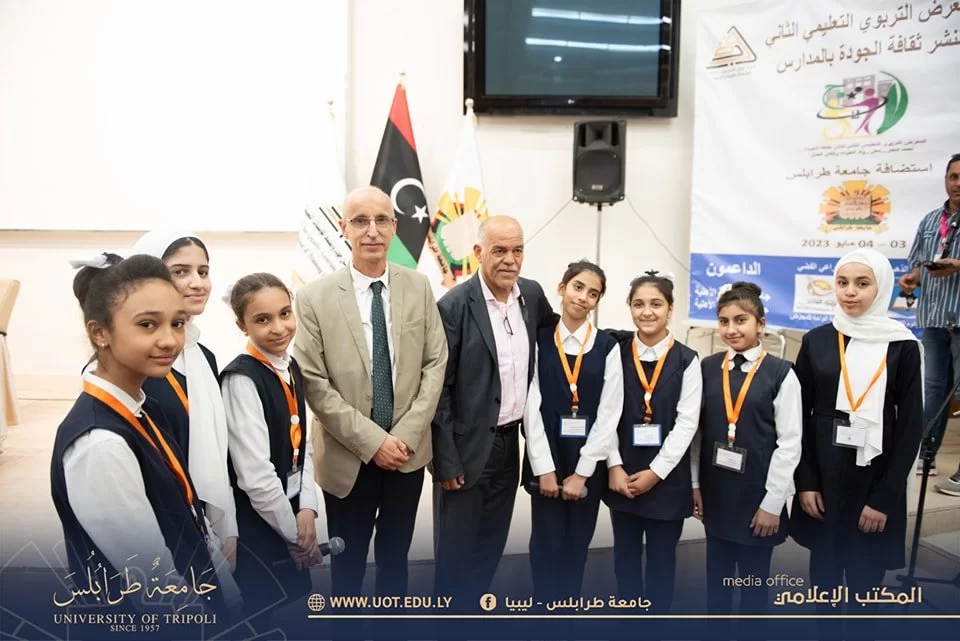 افتتح اليوم الأربعاء الموافق 3 مايو 2023 م المعرض التربوي التعليمي الثاني لنشر ثقافة الجودة تحت شعار "نحن رواد الجودة وإتقان العمل" بمسرح الكيمياء - كلية العلوم بجامعة طرابلس، بحضور كل من: السيد رئيس جامعة طرابلس، والسيد وكيل الجامعة، والسيد الكاتب العام بالجامعة، والسيد رئيس قسم ضمان الجودة للتعليم العالي، والسيد وكيل وزارة التعليم العالي، رفقة السيد وكيل وزارة التعليم التقني والفني لشؤون الكليات والمعاهد، والسيد مدير إدارة التعليم الخاص للتعليم التقني، والسيد رئيس اللجنة العليا لمدرسة الفنون والصنائع، والسيد مدير إدارة التعليم الثانوي، والسيد مدير مركز المناهج، والسيد مدير إدارة الجودة، والسادة مراقبي تعليم طرابلس الكبرى ومدراء إدارات المركز الوطني للجود؛ حيث افتتح المعرض بتلاوة عطرة لآيات بيّنات من الذكر الحكيم تلاها وقفة النشيد الوطني، ومن ثم كلمات ترحيبية من قبل كل من: السيد رئيس جامعة طرابلس، والسيد مدير مركز ضمان الجودة، والسيد وكيل وزارة التعليم العالي، وبعد ذلك تم الانتقال إلى برتوكول كلمات الحضور الرسمية نيابة عن المؤسسات العلمية، كما كان لأطفال المدارس نصيب من البرنامج الزمني للمعرض؛ حيث قدمت طالبات مدرسة الضياء عرضاً استعراضياً، وفي الختام تم قص شريط المعرض الذي تخللته عدة أجنحة للمدارس التي تحصلت على اعتماد الجودة من قبل المركز الوطني لضمان الجودة، بالإضافة إلى أجنحة أخرى خاصة بالجهات الراعية للمعرض.