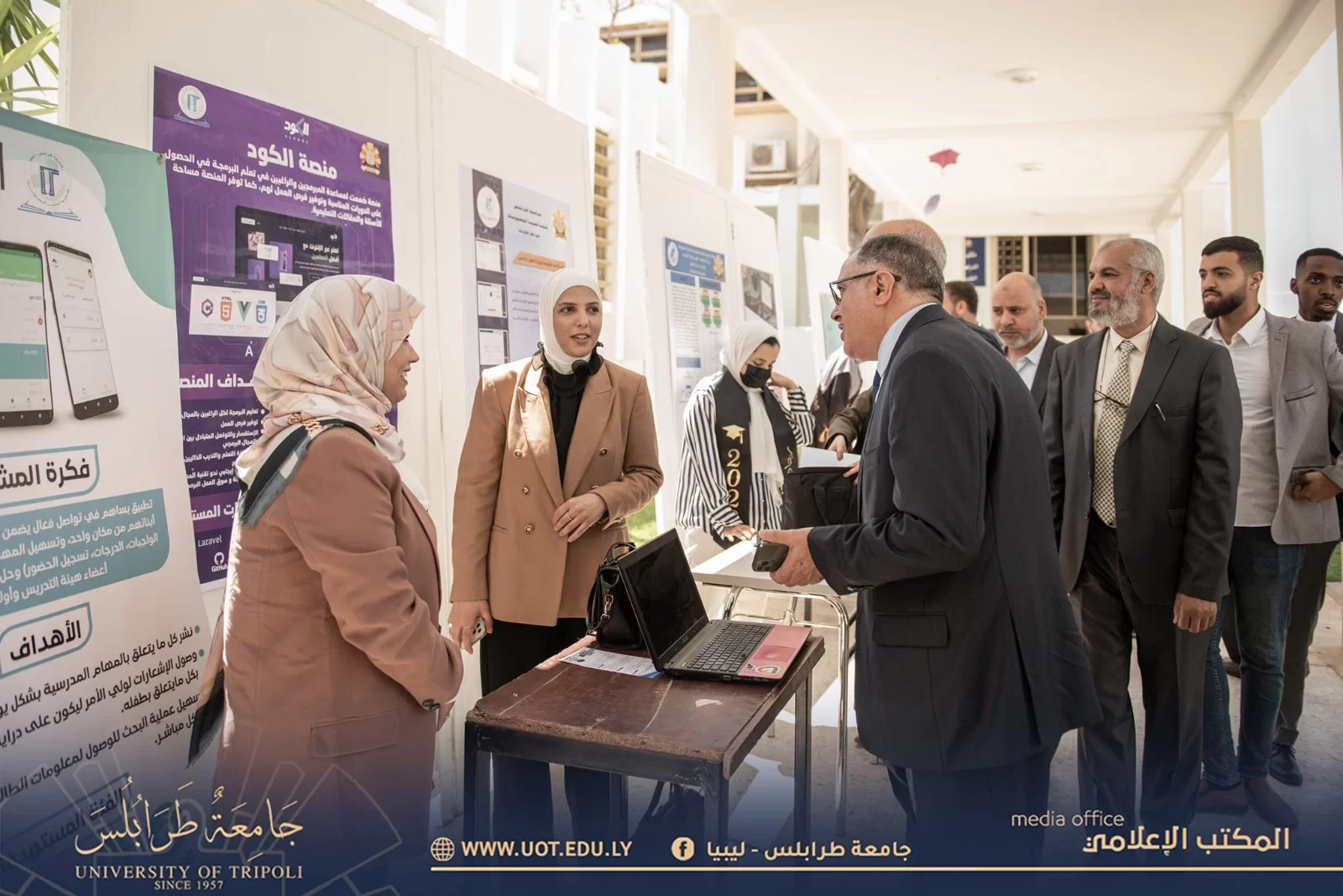 بقدرِ الكدِّ تكتسبُ المعالي ومن طلب العلا سهر الليالي ومن رام العلا من غير كد أضاع العمر في طلب المحال تروم العز ثم تنام ليلاً يغوص البحر من طلب اللآلي”أقيم صباح اليوم الخميس الموافق 11 مايو 2023 م بمدرج رشيد كعبار حفل اختتام مشاريع التخرج للفصل الدراسي خريف 2022 م بكلية تقنية المعلومات - جامعة طرابلس.وذلك بحضور كلاً من السيد رئيس جامعة طرابلس والسيد وكيل وزارة التعليم العالي والبحث العلمي والسادة وكلاء الجامعة وعمداء الكليات بالإضافة إلى عدد من الجهات الداعمة للمشاريع.حيث تم خلال فعاليات هذا الحفل تكريم أفضل مشروع تخرّج من كل قسم بكلية تقنية المعلومات، ومن ثم أُفتتح معرض خاص للتعريف بمشاريع التخرج التي تمت مناقشتها وإجازتها بالفصل الدراسي خريف 2022 م.الجدير بالذكر أنّ الهدف المنشود من هذه الاحتفالية هو ربط خريجي كلية تقنية المعلومات بالجهات الداعمة والشركات الخارجية وذلك من خلال عرض المشاريع الخاصة بهم عن قرب لتوصيل المضمون ولتقريب المسافات وفتح آفاق تعاون فيما بينهم.مع تمنياتنا لهم بالتوفيق والسداد في حياتهم العملية والعاقبة للشهادات العُليا.
