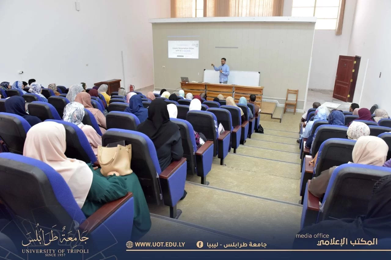 أُقيمت صباح الأمس الأحد الموافق 21 مايو 2023 م بمدرج كلية تقنية المعلومات - جامعة طرابلس ورشة عمل بعنوان "مهارات العرض والإلقاء الأكاديمي"، والتي تم تنفيذها من قبل مركز البحوث والاستشارات والتدريب، وأشرف عليها السيد: د. على عمر رمضان، حيث حضر هذه الورشة عدد كبير من أعضاء هيئة التدريس وطلبة الدراسات العُليا من داخل الجامعة وخارجها.