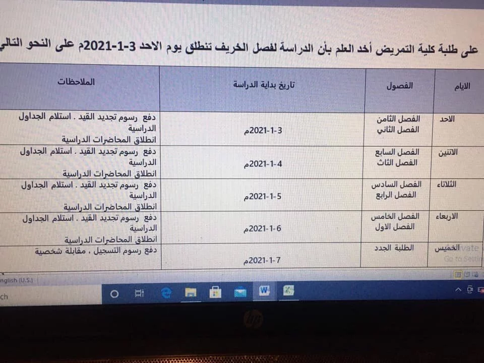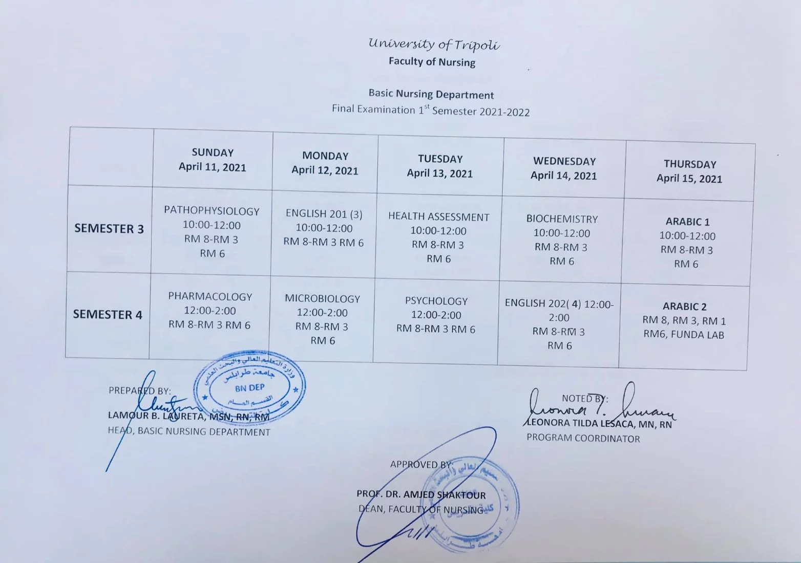 The Faculty of Nursing, University of Tripoli announces the start of the school on 3-1-2021, and to avoid congestion, the mechanism for downloading materials and studying will be as follows:For the first to fourth semester, the study will be electronic and the lectures will be downloaded electronica