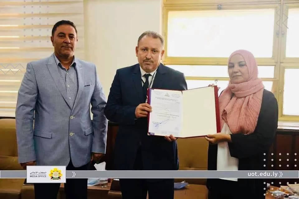استقبل رئيس جامعة طرابلس "أ.د.نبيل النطاح" صباح اليوم الثلاثاء الموافق للثالث من نوفمبر كلاً من عميد كلية الصيدلة "أ.د.عبد الرؤوف القصبى" و رئيسة قسم الجودة وتقييم الأداء بكلية الصيدلة "د.آمال عمار"، حيث سلّم السيد الرئيس لهم قرار الإعتماد المؤسسى لكلية الصيدلة والذى يحمل قرار رقم "100" لسنة 2020 وا
