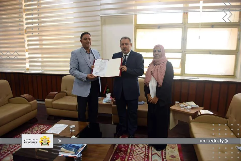 استقبل رئيس جامعة طرابلس "أ.د.نبيل النطاح" صباح اليوم الثلاثاء الموافق للثالث من نوفمبر كلاً من عميد كلية الصيدلة "أ.د.عبد الرؤوف القصبى" و رئيسة قسم الجودة وتقييم الأداء بكلية الصيدلة "د.آمال عمار"، حيث سلّم السيد الرئيس لهم قرار الإعتماد المؤسسى لكلية الصيدلة والذى يحمل قرار رقم "100" لسنة 2020 والصادر من مدير المركز الوطنى لضمان الجودة واعتماد المؤسسات التعليمية والتدريبية "أ.د.محمد العتوق" الذي يشمل اعتماد برنامج البكالوريوس للعلوم الصيدلانية والماجستير في بعض الأقسام المشار إليها في القرار. وباعتماد كلية الصيدلة بجامعة طرابلس، تم اعتماد اسم جامعة طرابلس بقرار رقم "101" لسنة 2020 الصادر أيضاً من مدير المركز الوطني لضمان الجودة واعتماد المؤسسات التعليمية والتدريبية "أ.د.محمد العتوق"، وفي الوقت نفسه قدّم السيد عميد الكلية والسيدة رئيسة قسم الجودة وتقييم الأداء الشكر والتقدير والعرفان للسيد رئيس جامعة طرابلس "أ.د.نبيل النطاح" علي دعمه وتشجعيه من أجل إرساء وتطبيق معايير الجودة بجامعة طرابلس، أيضاً تم تقديم الشكر والتقدير إلى فريق التدقيق المكلف من المركز الوطني لضمان الجودة واعتماد المؤسسات التعليمية والتدريبية وعلي رأسهم السيد مدير المركز وكل أعضاء مجلس الكلية والموظفين بكلية الصيدلة على كافة جهوذهم المبذولة، مُتمنين كل التوفيق لكافة الكليات وكل المهتمين بالجودة بها، من أجل أن تكون جامعة طرابلس في صفوف الجامعات المرموقة.