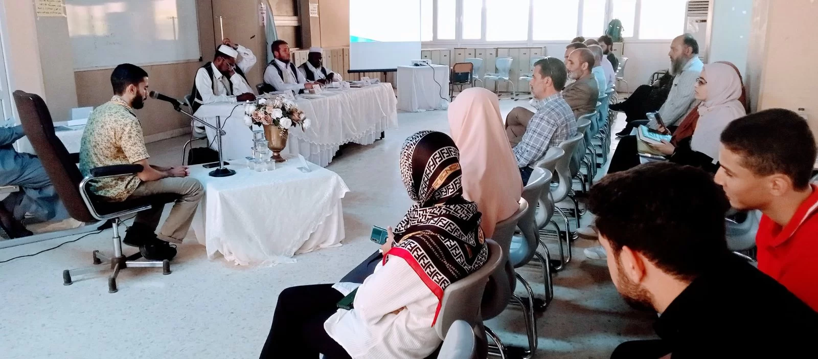 أقيمت المسابقة القرآنية بكلية الصيدلة بمشاركة أكثر من 45 طالب وطالبة بحضور كل من أ د عميد الكلية وعددا من أعضاء هيئة التدريس ومدراء المكاتب ورؤساء الأقسام بالإضافةإلى عضو متابعة النشاط التقافي بادارة النشاط العام بالجامعة وباشراف السادةلجنة التحكيم من أعضاء هيئة التدريس بكلية العلوم الشرعية تاجوراء