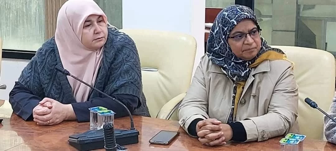 وكلا من الدكتورة نهلة الأبيض والدكتورة فادية محمد الجعفري، منسقتي الجودة بالكلية، والدكتور مصطفي أبورقيبة - ادارة الاعتماد.