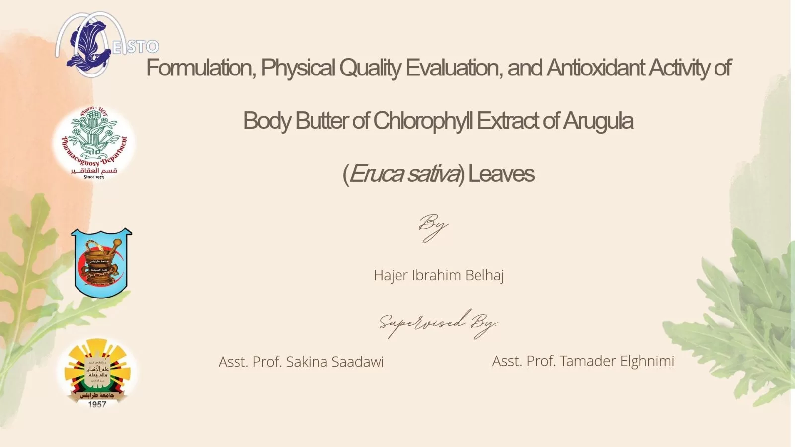 تحت عنوان:Formulation, Physical Quality Evaluation, and Antioxidant Activity of Body Butter of Chlorophyll Extract of Arugula (Eruca sativa) Leaves
