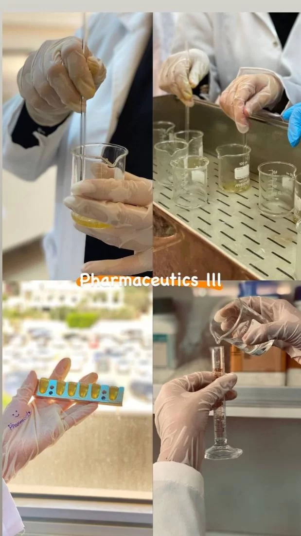 تشهد معامل مقرر صيدلانيات 3 بإشراف ا. فتحية الماني نشاطات مميزة من الطلبة في مجال التركيبات الصيدلانية لعدة اشكال دوائية