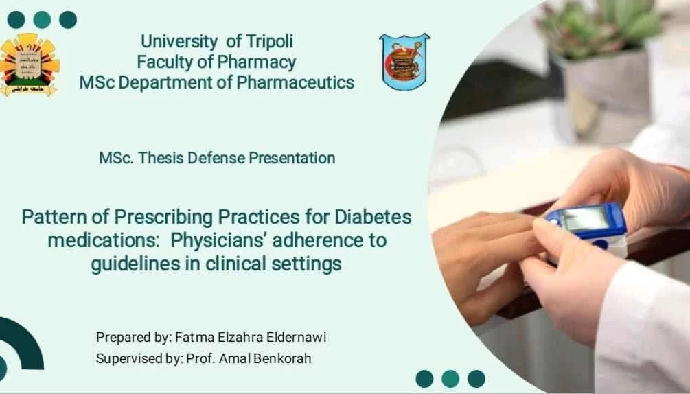 تحت عنون( نمط ممارسة وصف أدوية مرض السكري: إلتزام الأطباء بالمباديء التوجيهية العلاجية في المرافق الصحية الليبية)