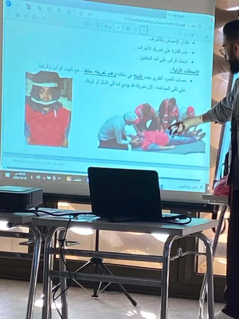 اشتملت الدورة على مجموعة من المواضيع المهمة والتدريبات العملية التي تشمل أساسيات الإسعافات الأولية، مثل التنفس الاصطناعي