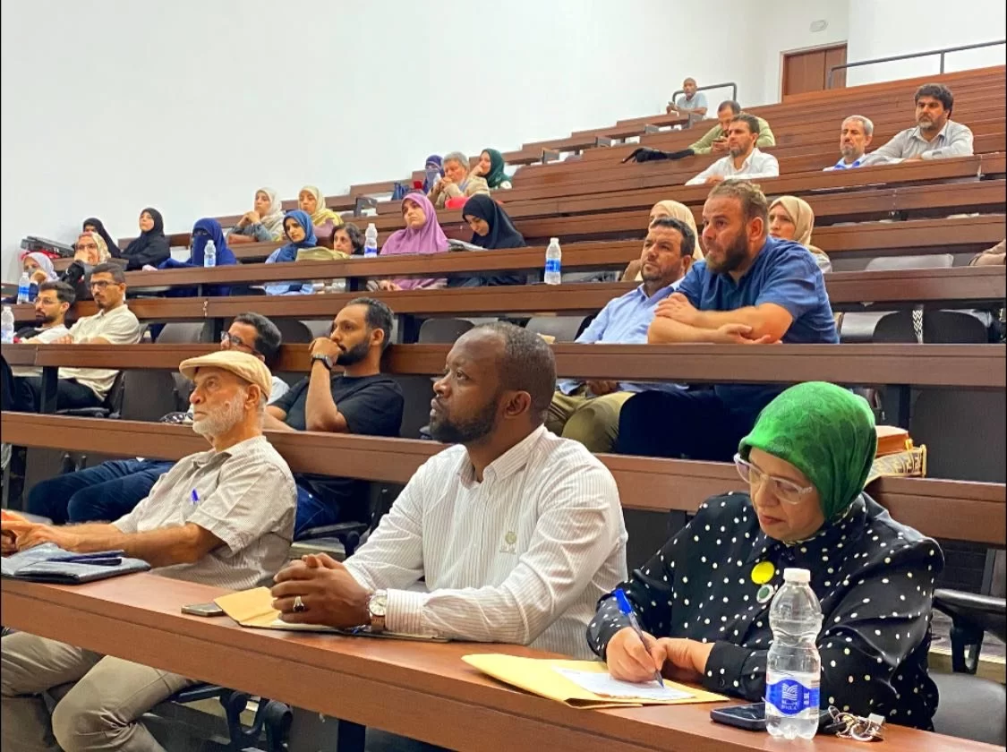 كلية الصيدلة تحتفي باليوم العالمي للصيادلة بورشة عمل عن الذكاء الاصطناعي:في أجواء علمية متميزة، انعقدت يوم أمس الثلاثاء الموافق 30 سبتمبر 2025 بكلية الصيدلة – جامعة طرابلس، ورشة العمل بعنوان: “مقدمة في الذكاء الاصطناعي ودمجه في البحث العلمي”بمدرج الرازي، نظّمها قسم البحوث والاستشارات والتدريب، وذلك احتفاءً باليوم العالمي للصيادلة (25 سبتمبر).وقد حضر فعاليات الورشة كلٌّ من:• السيد عميد كلية الصيدلة. • السيد وكيل الكلية للشؤون العلمية. • عدد من أعضاء هيئة التدريس بالكلية. • ممثلين عن أقسام البحوث والاستشارات والتدريب بالكليات المختلفة.• أعضاء هيئة التدريس بالكليات الأخرى . • ممثلين عن وزارة الصحة. • مجموعة من طلبة الماجستير بكلية الصيدلة.• والبحاث المهتمين ببرنامج الذكاء الاصطناعي.ألقى الورشة الدكتور احميدة مصباح (المستشار بالهيئة الوطنية للبحث العلمي – زائر من كندا)، حيث تناول خلالها أساسيات الذكاء الاصطناعي وتطبيقاته العملية في البحث العلمي، مع التركيز على التطبيقات الطبية والصيدلانية.وقد شهدت الورشة نقاشات ثرية ومداخلات قيّمة من الحضور، بما يعكس الاهتمام المتزايد بدمج تقنيات الذكاء الاصطناعي في خدمة البحث العلمي والقطاع الصحي.