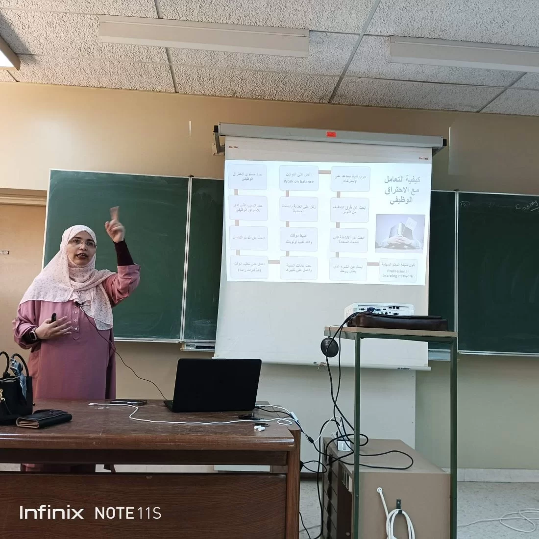 محاضرة بعنوان (الاحتراق الوظيفي: أسبابه،تأثيره علي الآداء الأكاديمي وسبل التغلب عليه)