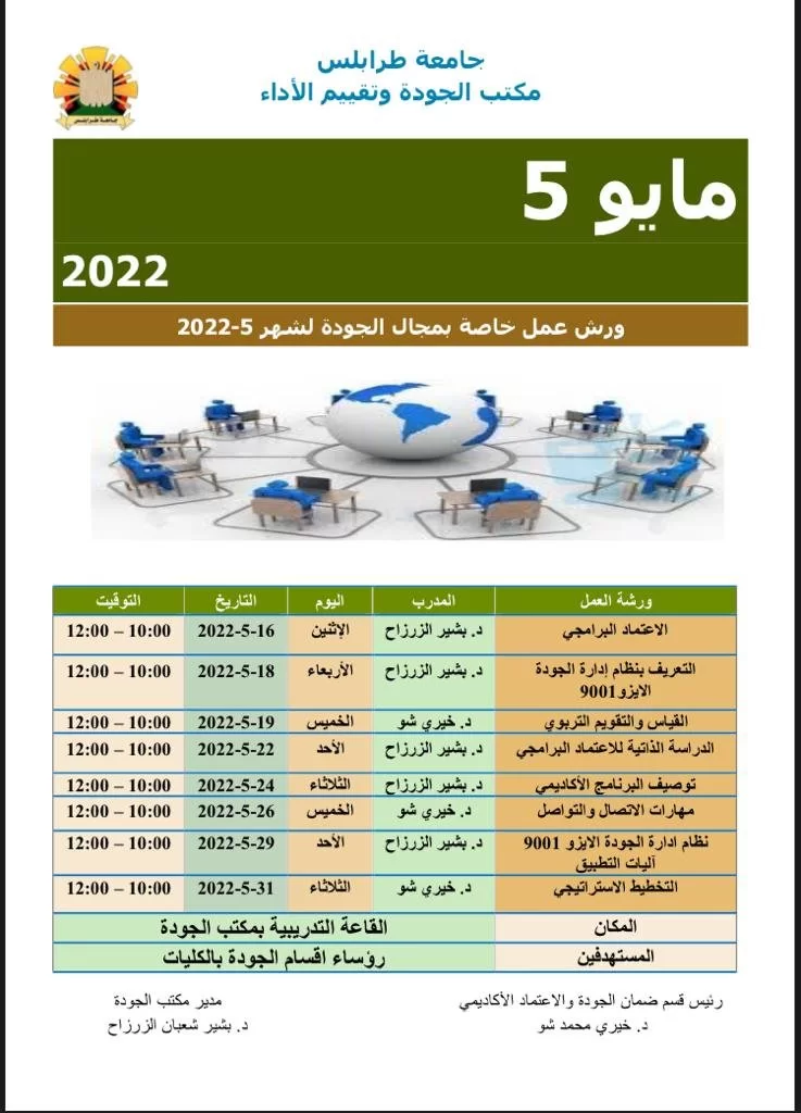 جدول لورشة عمل بمكتب الجودة بجامعة طرابلس