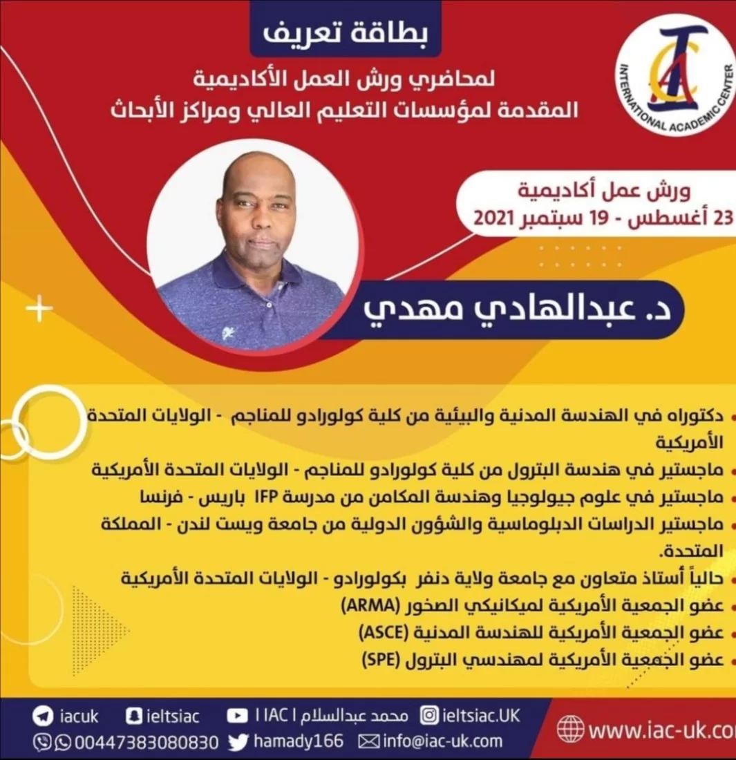 فى إطاربرنامج ورش العمل التى يقوم بتنفيذها المركز الأكاديمي العالمي ويشرف المركز عليها بجامعة طرابلس سيتم يوم الغذ الخميس تنفيذ ورشة عمل بعنوان "المؤتمرات الدولية الانضمام والتنظيم" - تقديم: د. قمر عباسي + د حسان عباس- اليوم: الخميس- التاريخ: 9/9/2021- التو