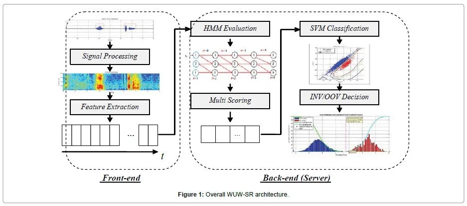 these features are decoded with corresponding Hidden Markov Models (HMMs) in the back-end stage of the WUWSR.