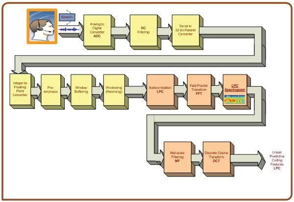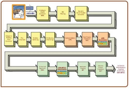 recognition (e.g., server). The three sets of feature extraction of speech (MFCC, LPC, and ENH-MFCC) are performed