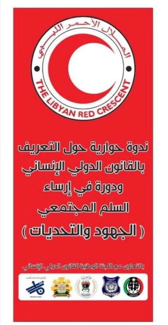 مشاركة للفريق البحثي الخاص بالقانون الدولي الإنساني بجامعة طرابلس فى ندوة حوارية بعنوان: ( القانون الدولي الانساني ودوره في تعزيز السلم المجتمعي) المنعقدة تحت شعار (الجهود والتحديات)