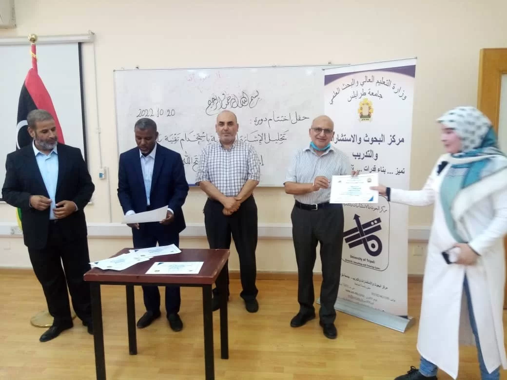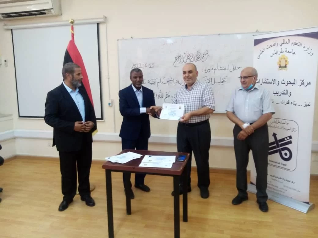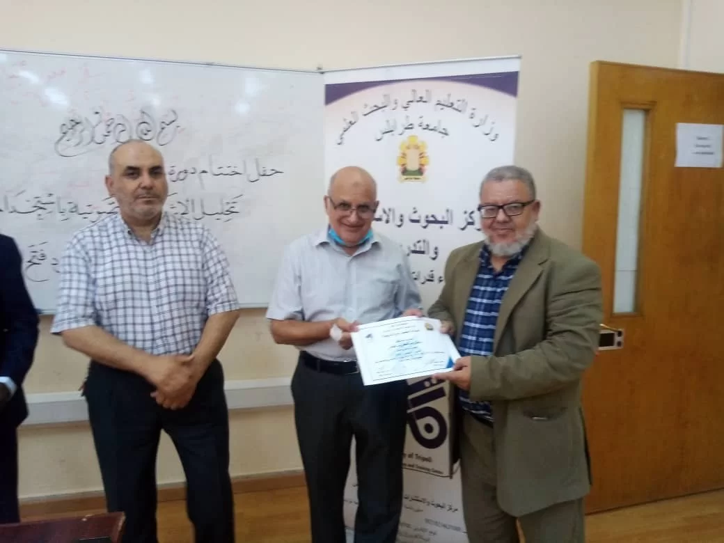 وحضر كل من د. على قنون مدير عام المركز و د. جمال اندير. و, د. محمود الصغير مشرفي الدورة