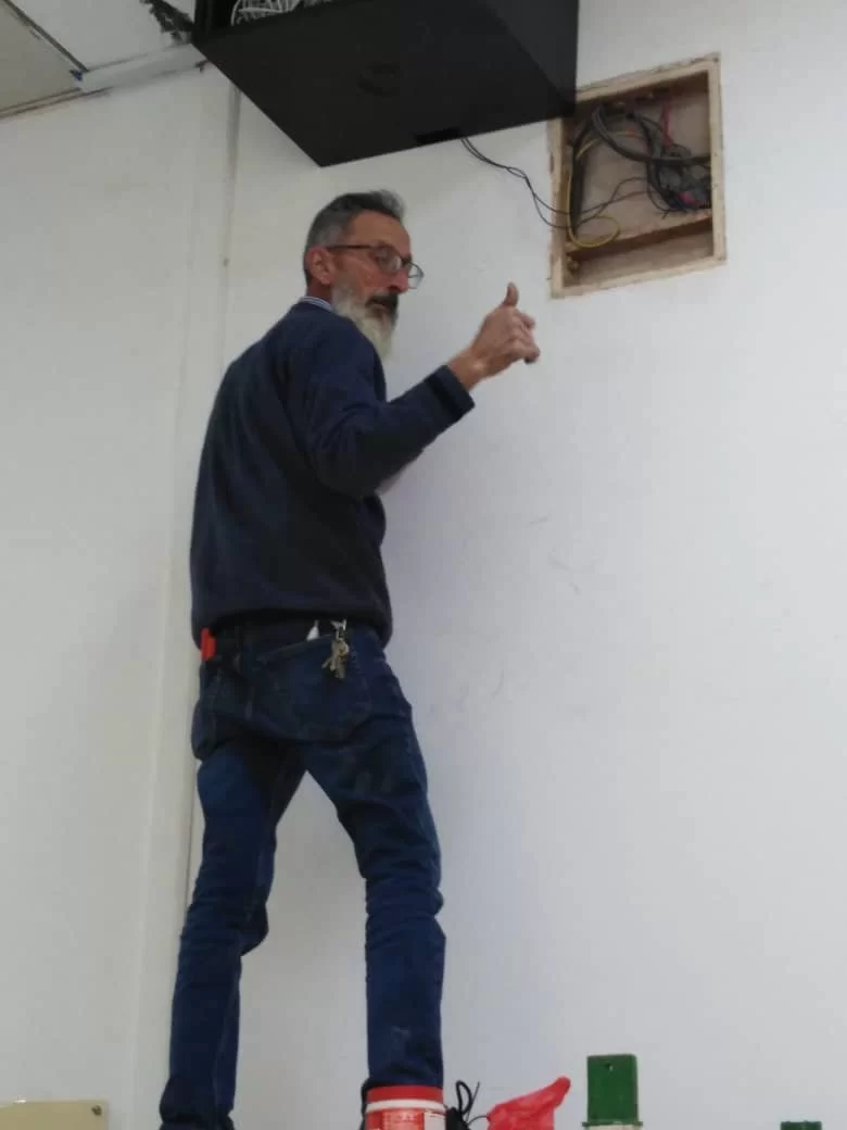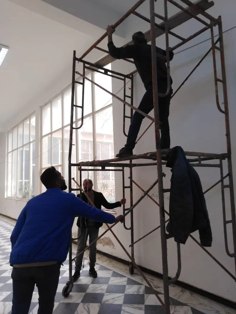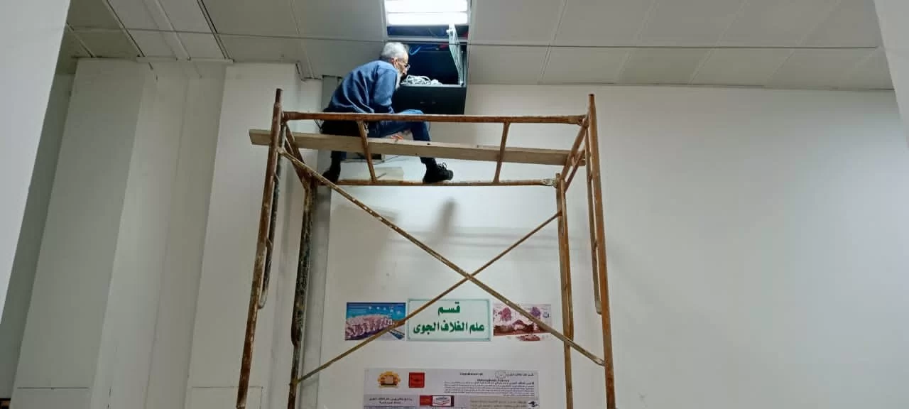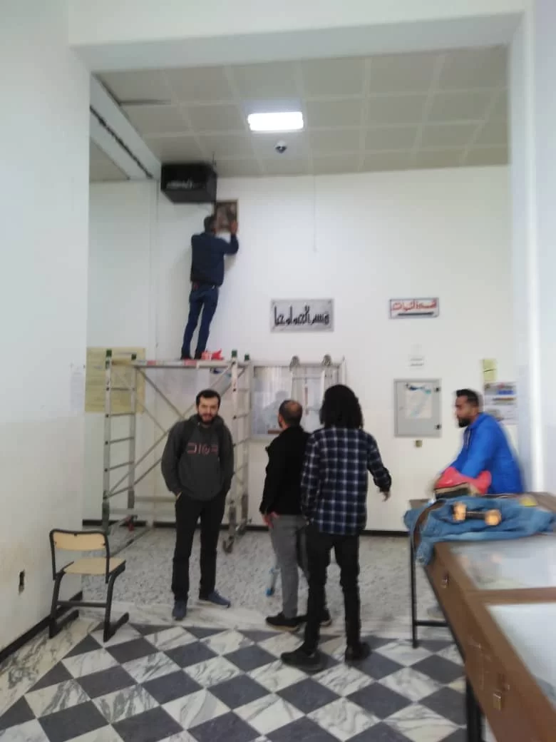 في إطار التعاون بين إدارات الجامعة يساند موظفي كلية العلوم وفنيي الشؤون الفنية بالجامعة الشركة المكلفة بتركيب الكاميرات داخل مرافق كلية العلوم