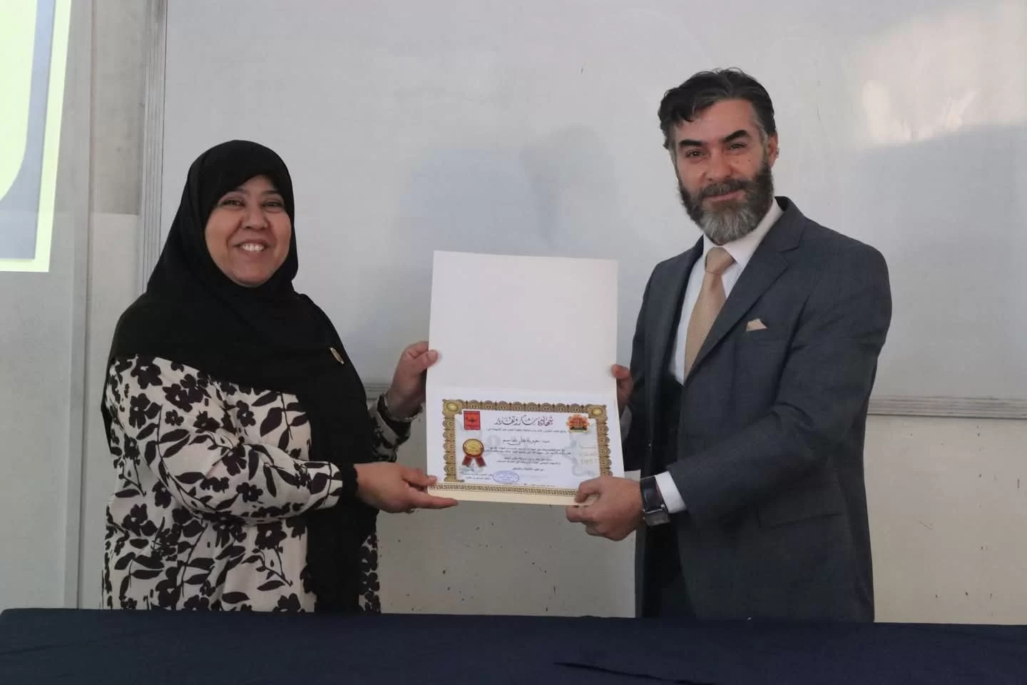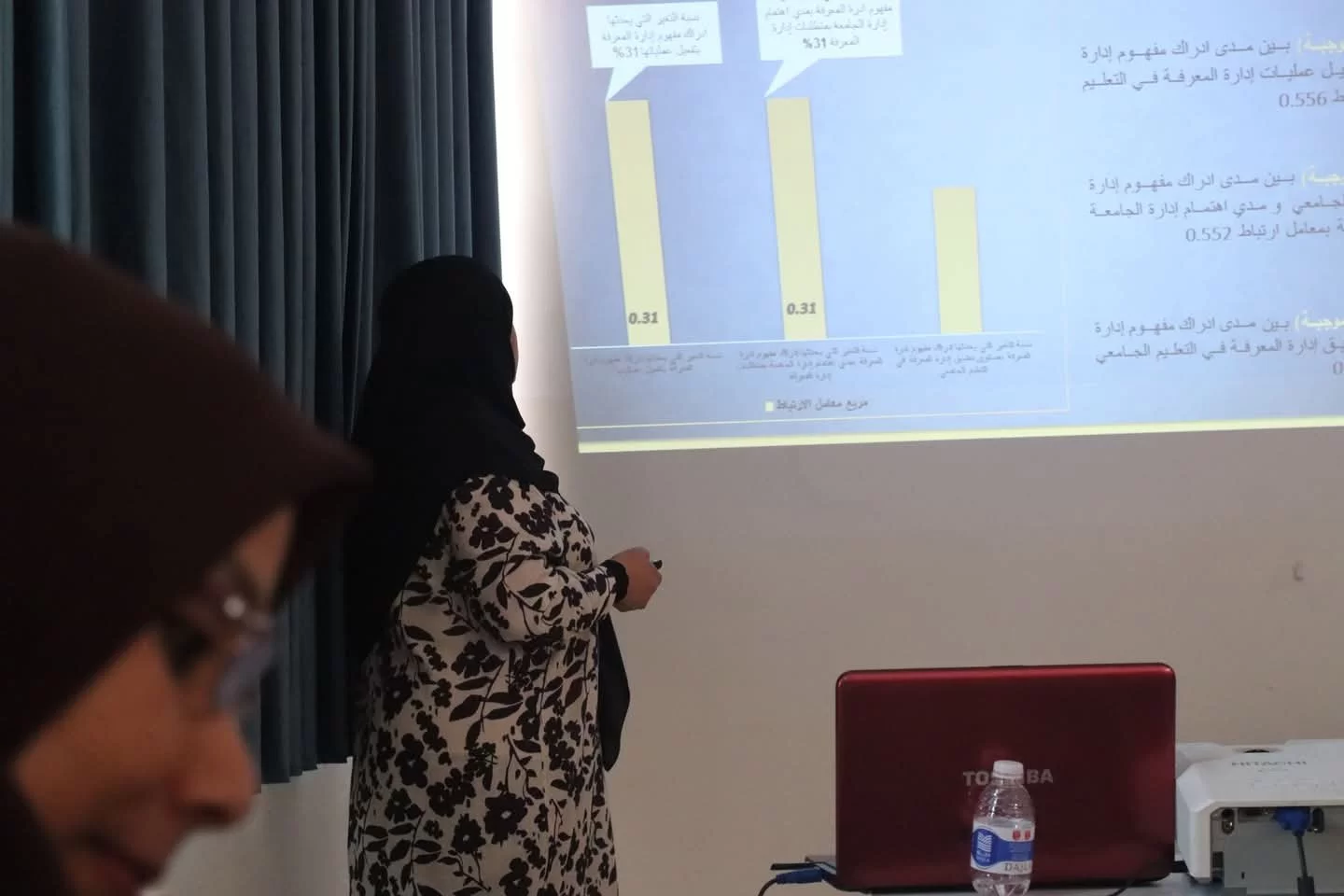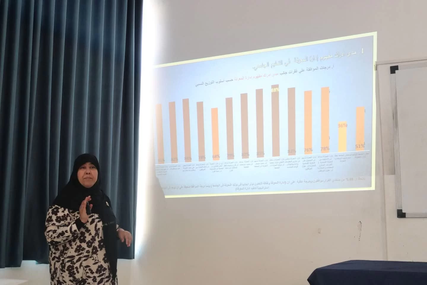 من خلال الانشطة التوعوية والثقافية والعلمية التي يشارك بها السادة الموظفين وفنيي المعامل بكلية العلوم خلال العام الجاري في كافة الأقسام العلمية.. قامت الأستاذة : نجوى خليفة الشاوش الموظفة بقسم الرياضيات بعرض محاضرة بعنوان ( دور إدارة المعرفة في تطوير التعليم الجامعي) يوم الثلاثاء 21/1/2025م حضره كلاً من مدير الشؤون الادارية ونقيب الموظفين وموظفي الاقسام العلمية.