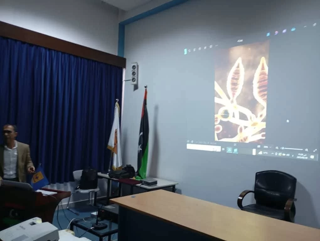 من خلال الانشطة التوعوية والثقافية والعلمية التي يشارك بها السادة الموظفين وفنيي المعامل بكلية العلوم خلال العام الجاري في كافة الأقسام العلمية.. قام كلاً من الأستاذة : جميلة دحيم بعرض مقدمة وتعريف عن قسم علم النبات والاستاذ عادل الزحاف فنيي معمل بقسم علم النبات قام بعرض محاضرة بعنوان ( مقدمة عن الفطريات وأهميتها ودورها في حياتنا) يوم الخميس 20/02/2025م حضرها كلاً من رئيس قسم علم النبات ومدير الشؤون الادارية ونقيب الموظفين ولفيف من أعضاء هيئة التدريس وموظفي الاقسام العلمية.