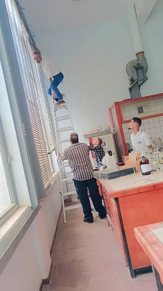 جانب من أعمال صيانة بعض مرافق الكلية هذا اليوم الأحد 4/5/2025 شملت صيانة بعض أجهزة التكييف وتوريد وتركيب ستائر لبعض المكاتب بالأقسام العلمية شارك فيها الشباب موظفي الكلية... تحية للرجال.