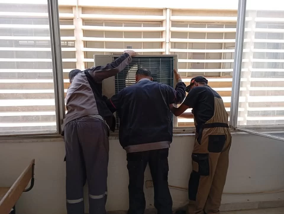 نتقدم بكامل الشكر والتقدير والاحترام للسادة فنيي مكتب الشؤون الفنية بالجامعة والسيد م. وسام التير على تنفيذ تركيبات جهاز التكييف قوة 48 بقاعة قسم الإحصاء بالكلية ونتمني ان يستمر التعاون بين إدارة المكتب والكلية وذلك لتوفير بيئة عمل لائقة بمنتسبي كلية العلوم
