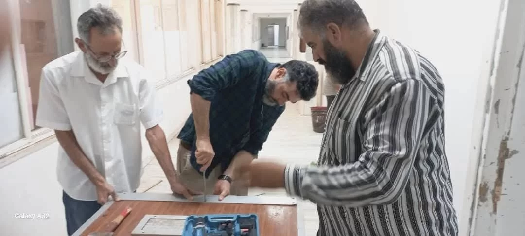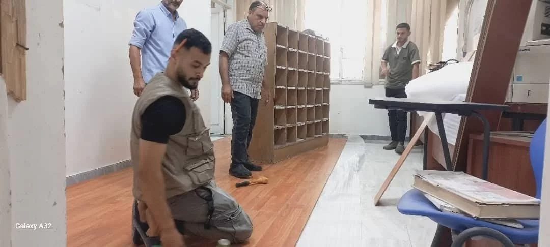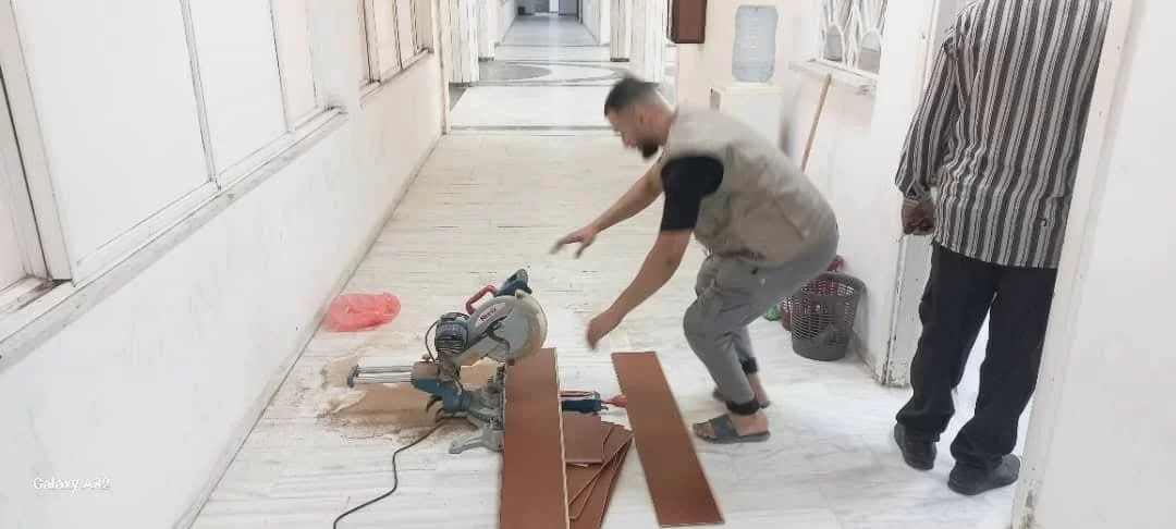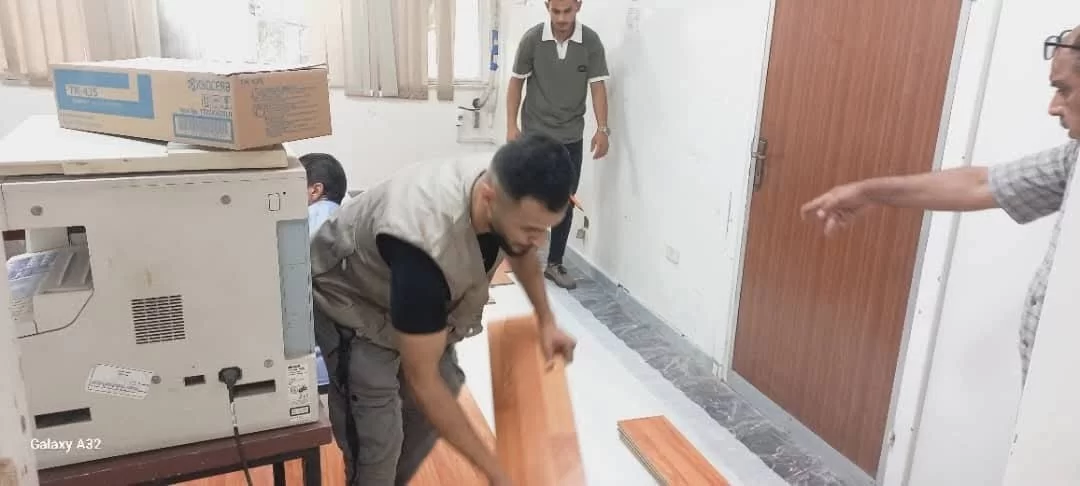 تم بعزم الشباب ورجال الكلية ظهيرة اليوم الاحد 29/06/2025م توريد وتركيب أرضية خشبية نوع بركيه ،نُفذت بمكتب وحدة المحفوظات بالكلية، تحسيناً للمظهر العام وتوفير بيئة عمل لائقة وفق ماهو متاح من امكانيات.
