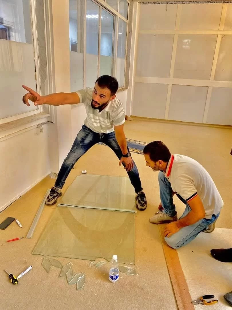 *قص وتركيب الواح الزجاج وصيانة الأقفال لبعض الأبواب بالكلية بالإضافة إلى أعمال المناولة والنقل.